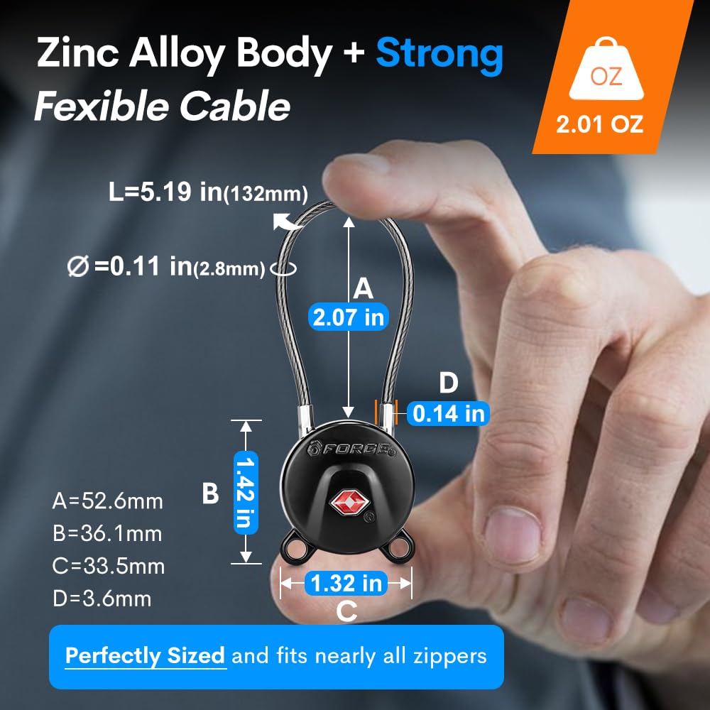Forge TSA Approved Luggage Locks Ultra-Secure Dimple TSA006 Key Travel Locks with Zinc Alloy Body- Black 2 Cable Locks