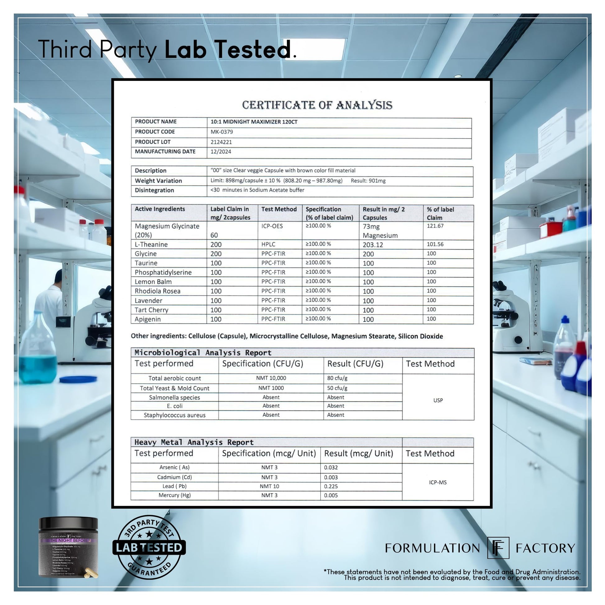 Formulation Factory The Night Before 10-in-1 Midnight Maximizer Sleep Supplement, Magnesium Glycinate, L-Theanine & More, Stress Relief, Relaxation, Recovery, Focus (120 Capsules – 2 Month Supply)