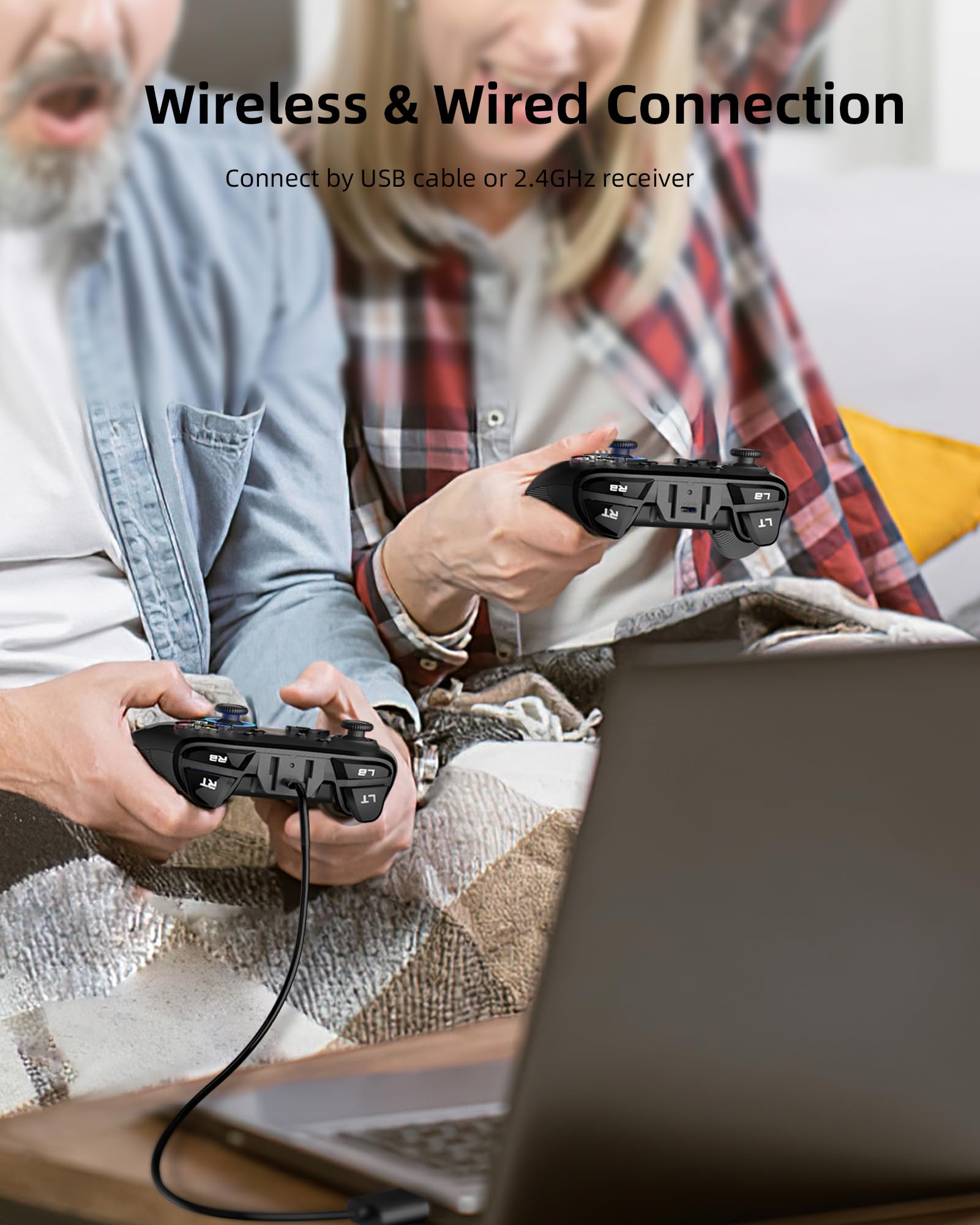 Forty4 Wireless Gaming Controller, Game Controller for PC Windows 7/8/10/11, PS3, Switch, Dual-Vibration Joystick Gamepad for Computer