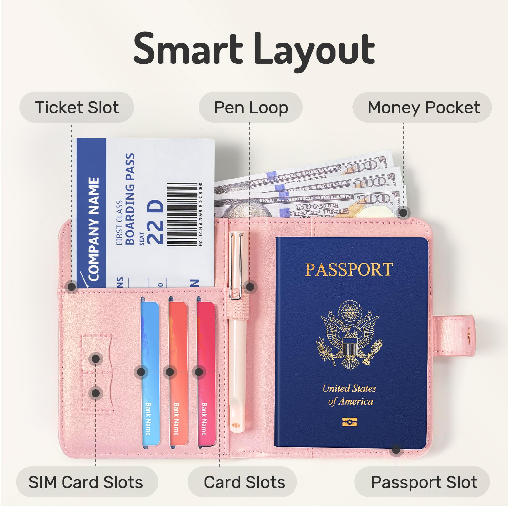 • Easy to Use: Equipped with a handy pen loop and a secure magnetic clasp, our passport holder simplifies your travel routine. Access your essentials quickly, securely, and without any hassle.
