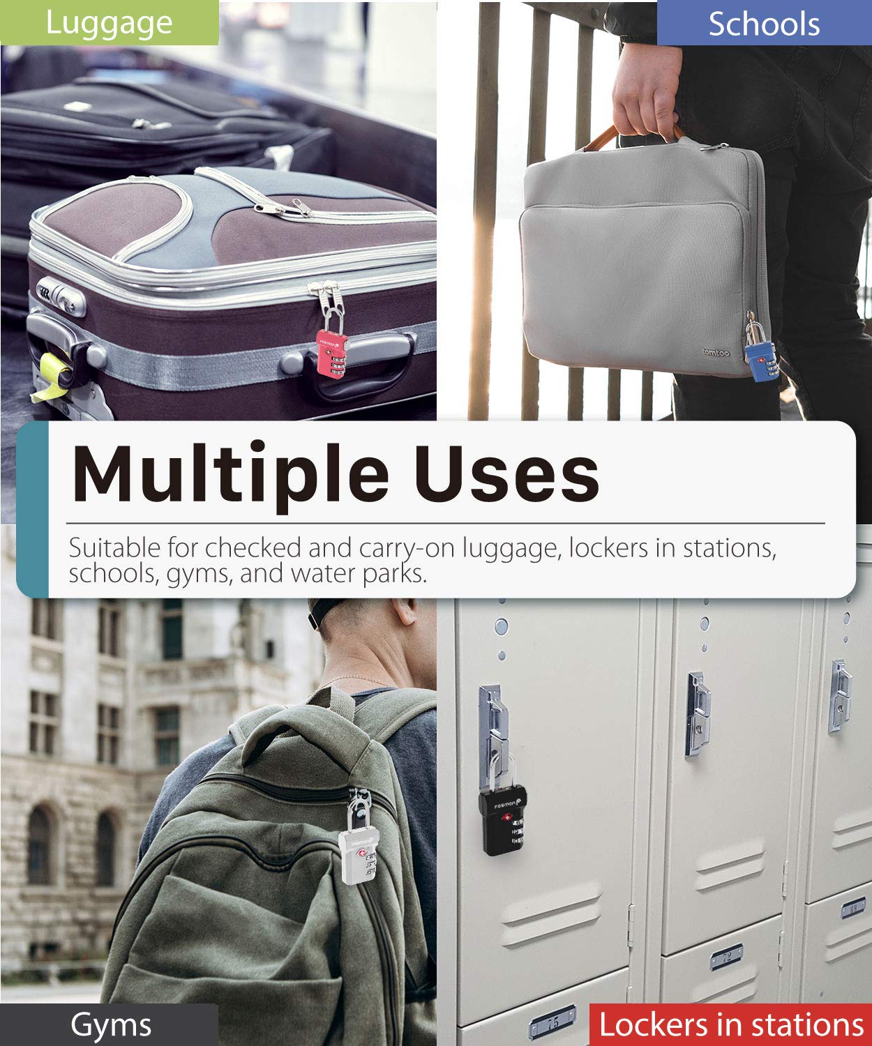 Fosmon TSA Approved Luggage Locks, Suitcase Travel Lock with Push Release Button, 3 Digit Combination Padlock for Gym Locker, Backpack Zipper- 4 Pack