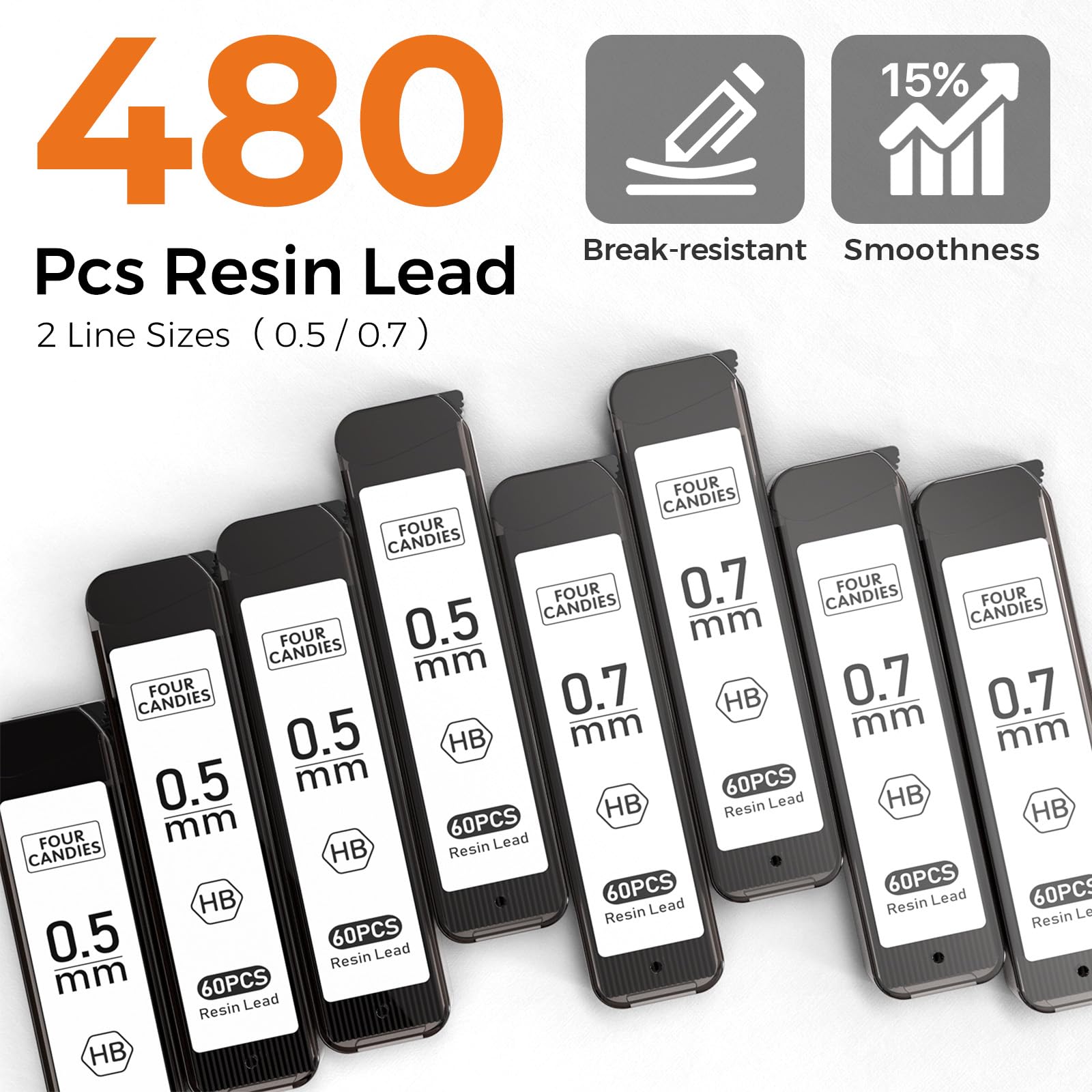 • 【480PCS Resin Lead】8 tubes of 60pcs super capacity leads. A more durable resin lead which doesn’t require sharpening and is not easy to break at the tip or break in the shaft, provides ultra-smooth writing and clear dark lines.