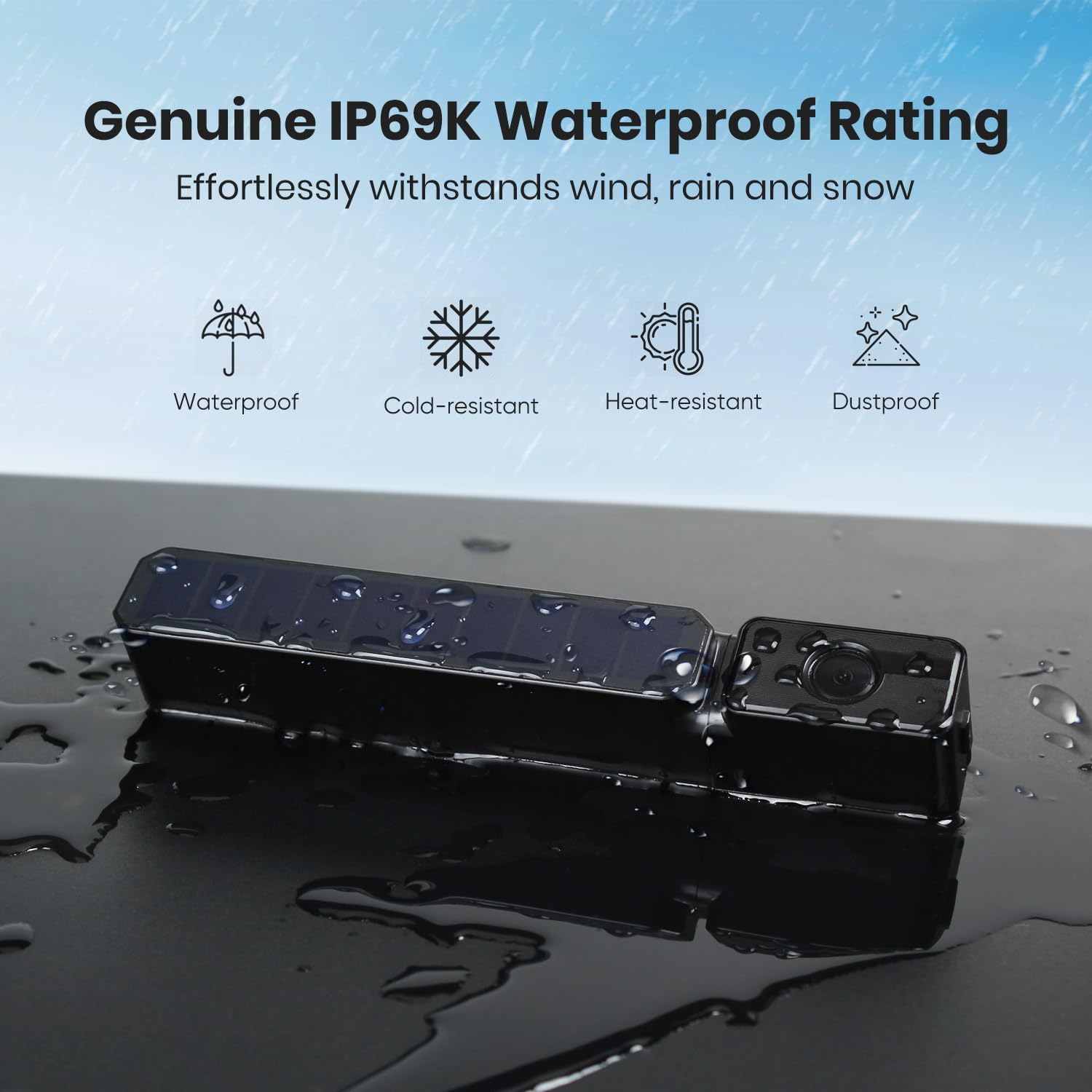 • 【Rechargeable Backup Camera With Solar Powered】The wireless backup camera for trucks features a solar panel to keep your device fully charged in strong sunlight, meeting your long-term travel or driving needs. You may also recharge the portable backup camera for truck with a Type-C charging port in winter or in times of lack of sunlight