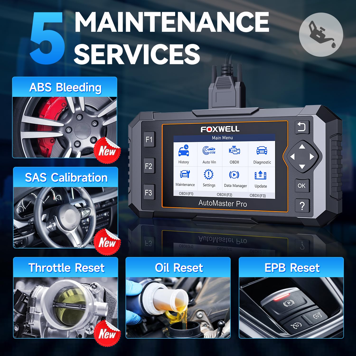 • 【UPGRADE OF NT604-POWERFUL 5 RESETS】Wanna to do maintenance service for your car however the basic 4 system scanner tool can't do it? Then FOXWELL NT614 Elite-the upgraded version of nt604, was born for providing you with 5 special functions-ABS Bleeding/Oil Reset/SAS Calibration/EPB Reset/Throttle Reset. These functions are enough for your daily needs. No need to buy those 300-600 dollors obd2 scanner. Saving your unnecessary repair fee with FOXWELL nt614 car scanner diagnostic tool!