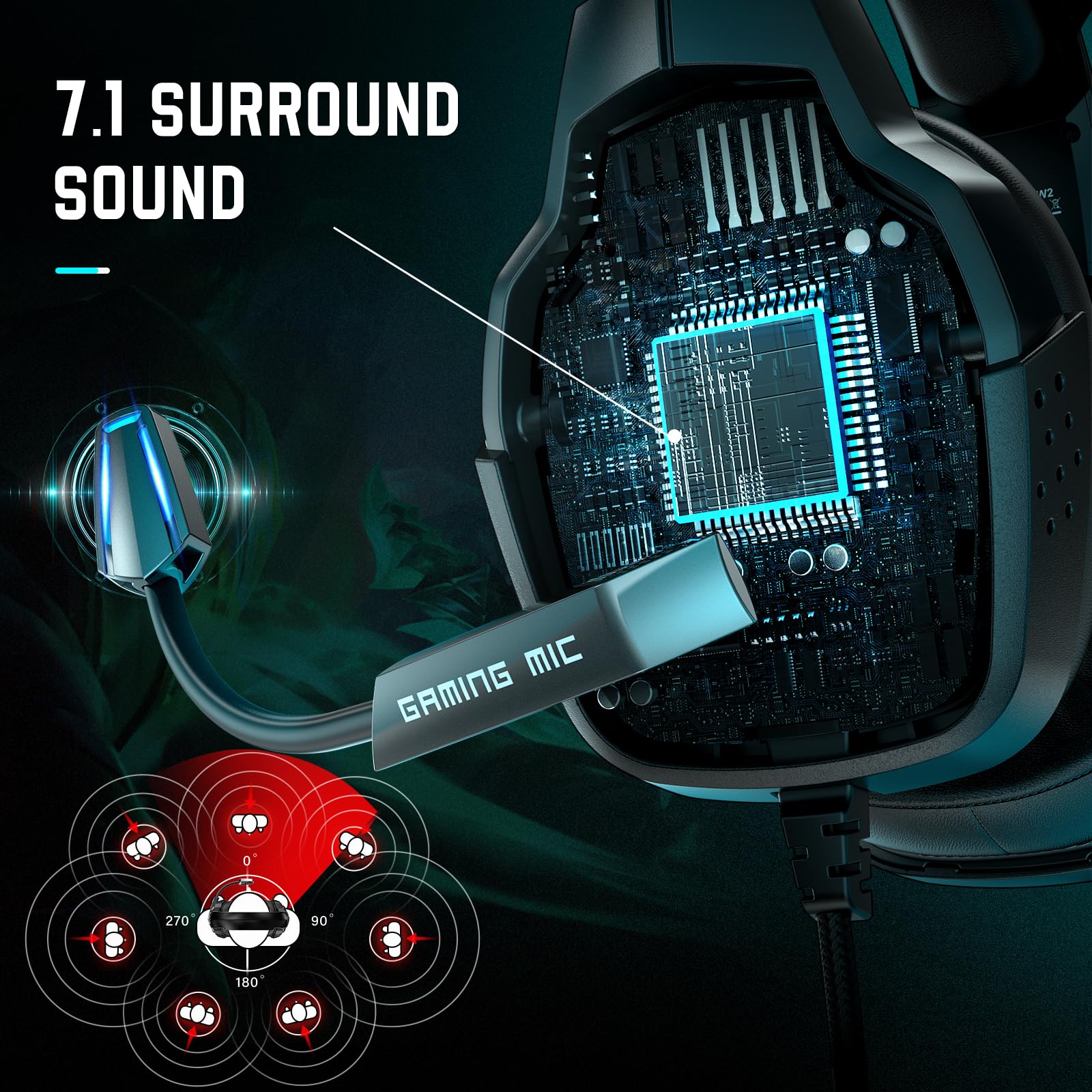 • 【Immersive Game Experience】This gaming headset features excellent environmental noise isolation and high-precision 50mm driver combine with virtual 7.1 surround sound, bringing you clear and shocking sound, helping you accurately position the enemies.