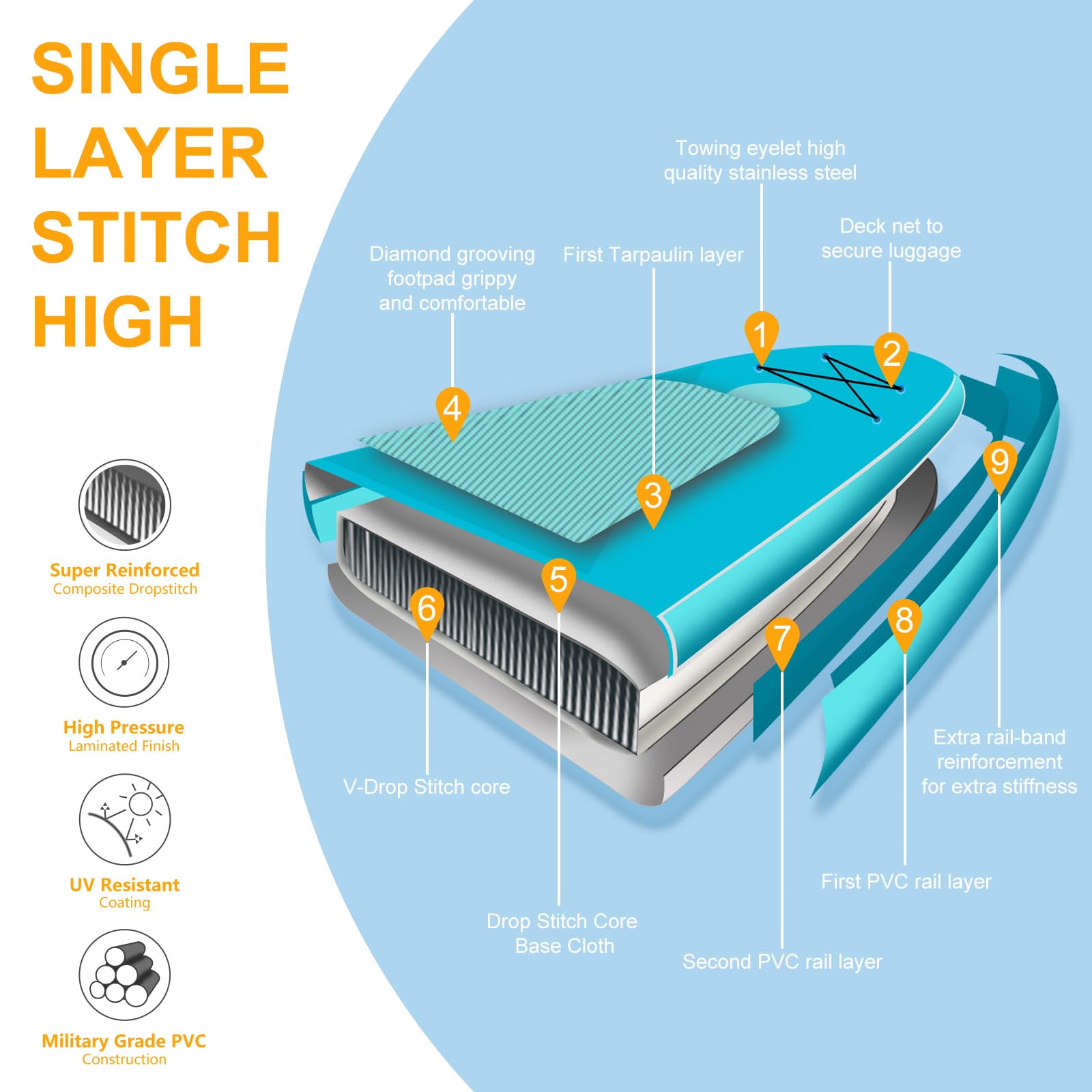 • 【QUICK AND EASY INFLATION】Spend more time on the water with our high-efficiency dual-action pump, inflating your sup kayak in minutes. For added convenience, use the included electric pump adapter to inflate effortlessly at the touch of a button.