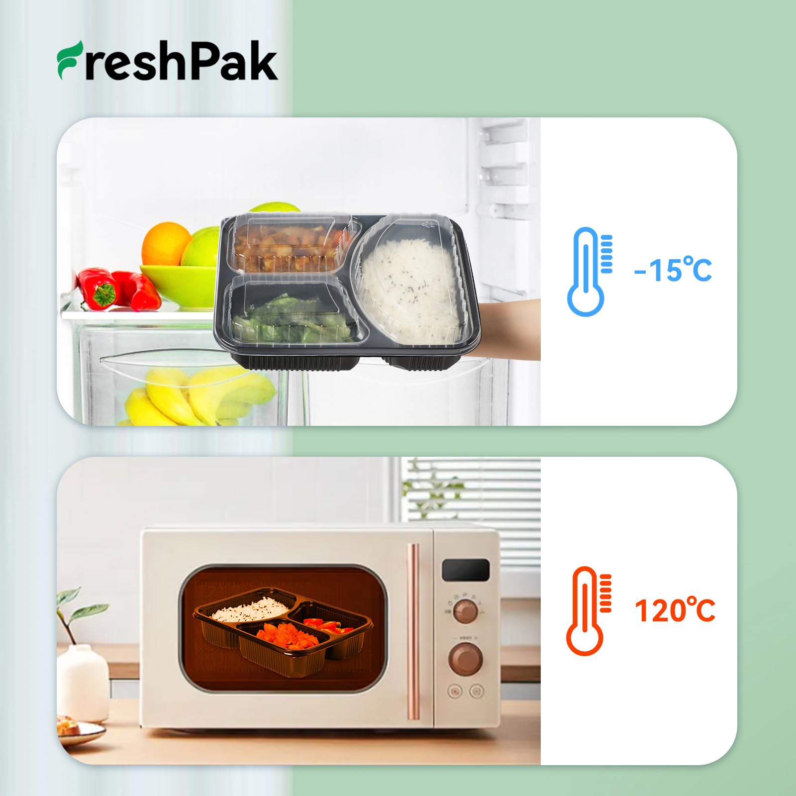 • 【MICROWAVE & FREEZER COMPATIBILITY】FRESHPAK take out food containers are designed with your convenience in mind.They are microwave-safe,allowing you to conveniently reheat your meals without transferring them to another dish.Additionally,they are freezer-compatible,enabling you to store your pre-prepared meals for later consumption