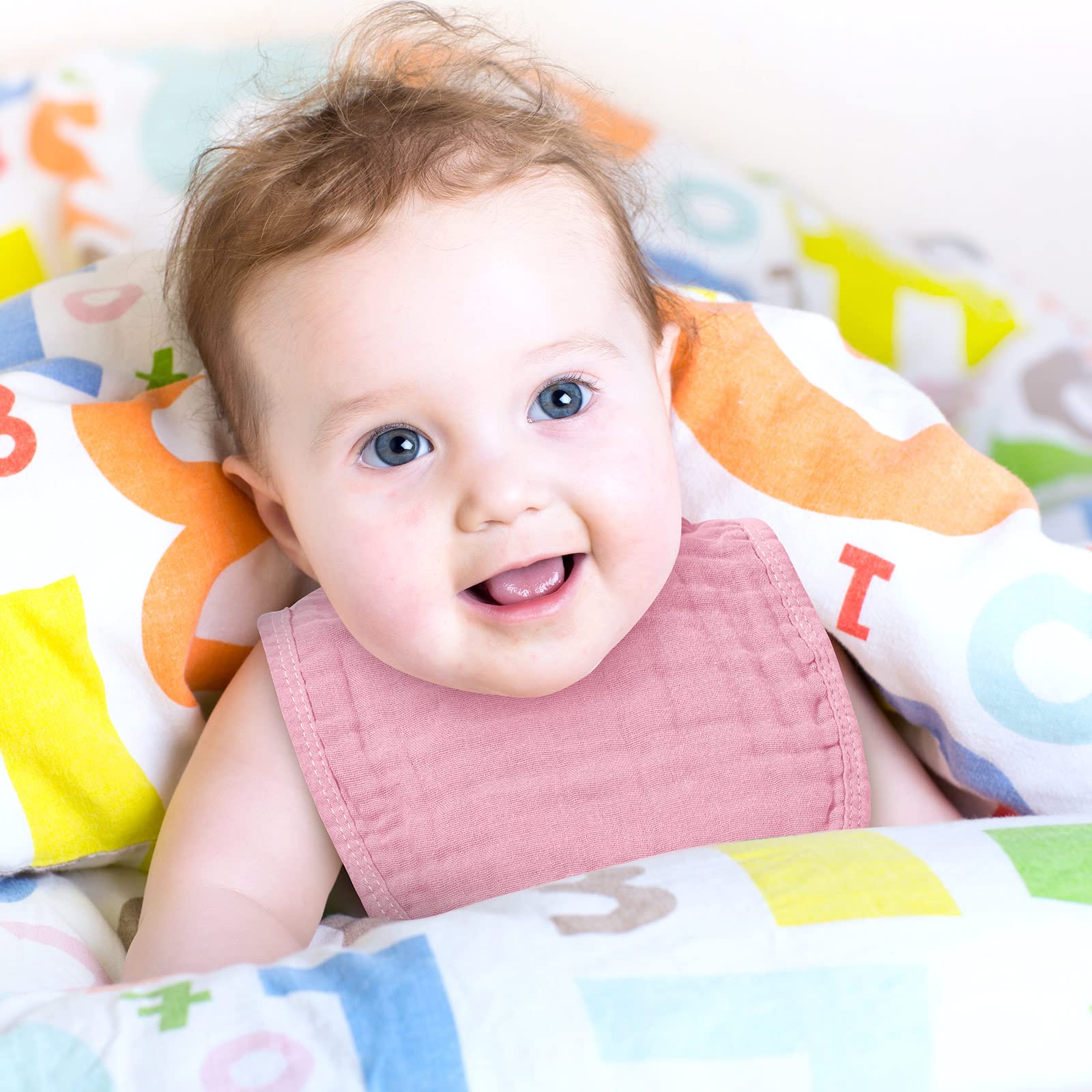Frienda 6 Pcs Muslin Bibs Burp Cloths for Baby Teething Bandana Bibs 6 Absorbent Layer for Baby Boy Girl Cotton Burping Cloth(Pink Series)