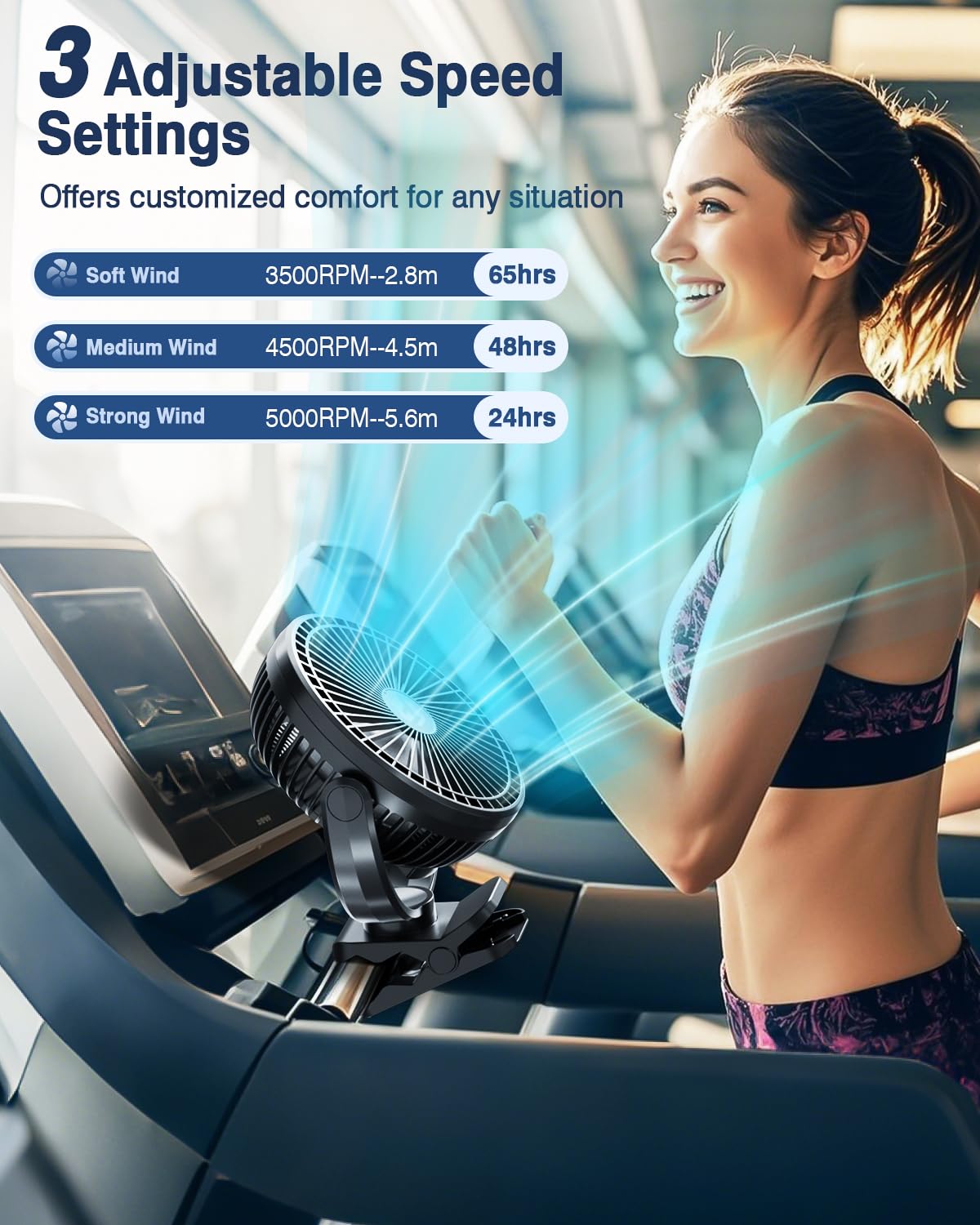 • 3 Speeds and 2 brightness: With 3 adjustable speeds helps, this clip on fan makes you can get a cool breeze anywhere, using the portable fan in extremely hot and humid weather with no AC; whether it is at home, office or outdoor, it is your first choice. Allows you to enjoy the cool breeze all day long