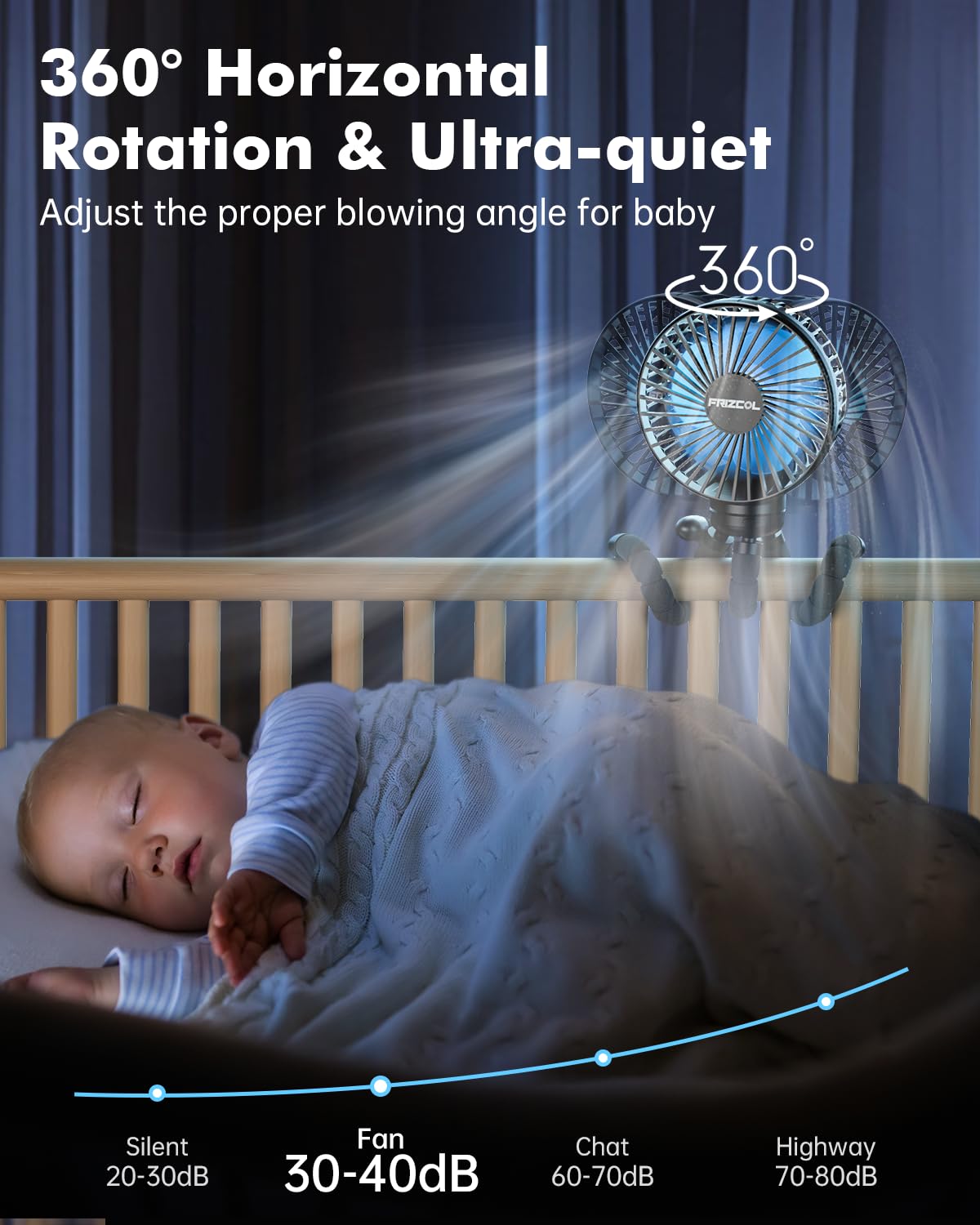 FRIZCOL Stroller Fan for Baby - Portable Fan Rechargeable - Battery Operated Fan(Use for 24Hrs) - Fan for Handheld/Clip On/Car Seat/Desk/Camping