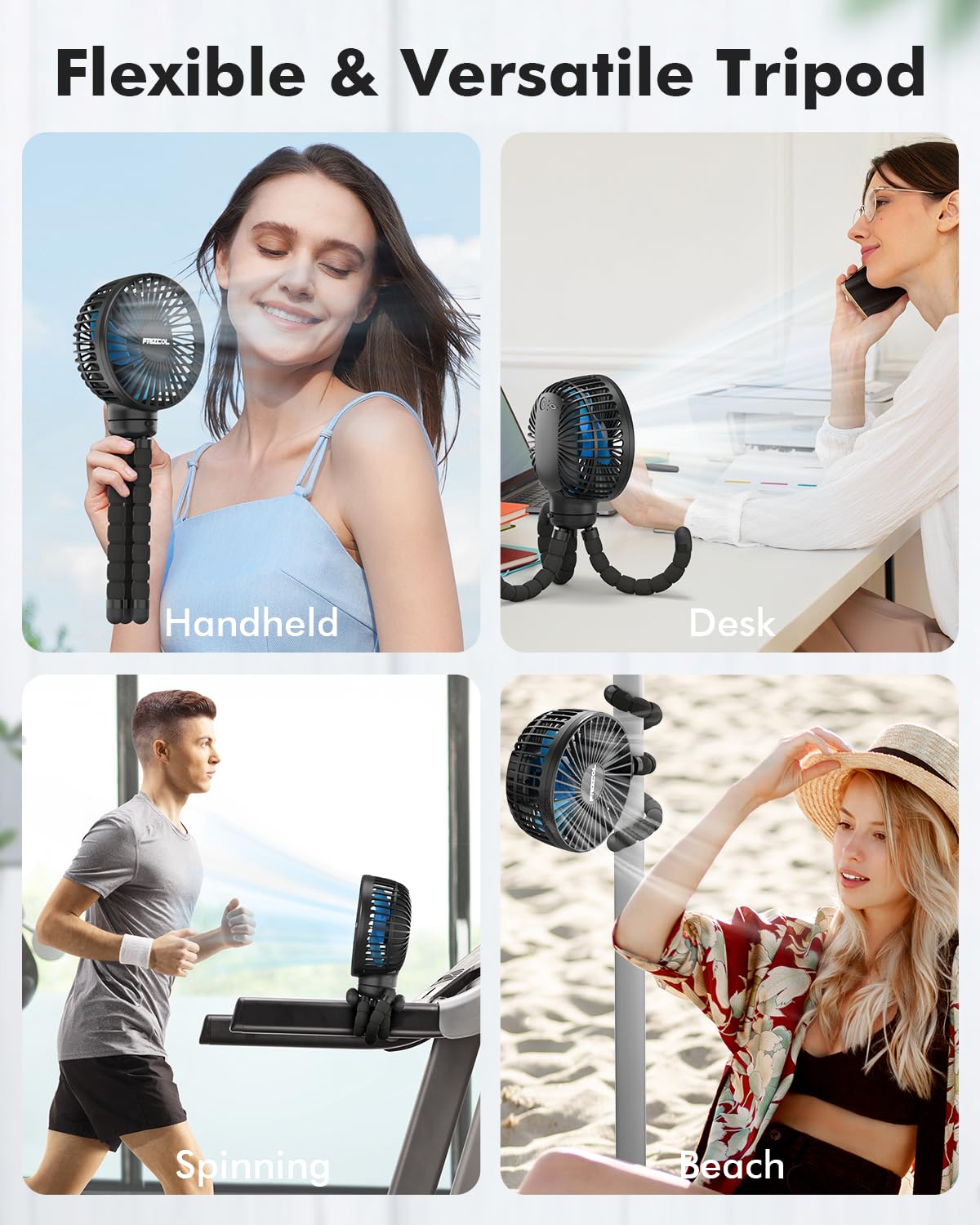 • 【Upgraded - Flexible Tripod】- In 2025, we made an upgrade, the tripod is made of safe and non-toxic sponge material and aluminum wire. Reliable and easier to attach. It can be rotated 360° vertically and horizontally, and you can bend it to any angle you want. No matter when and where, in this hot summer, your best choice.