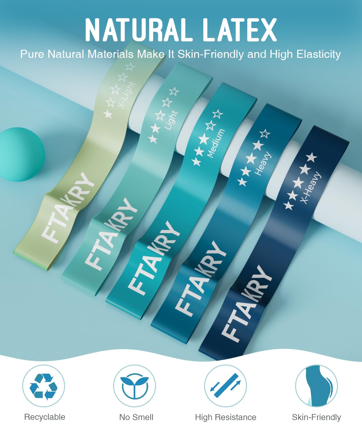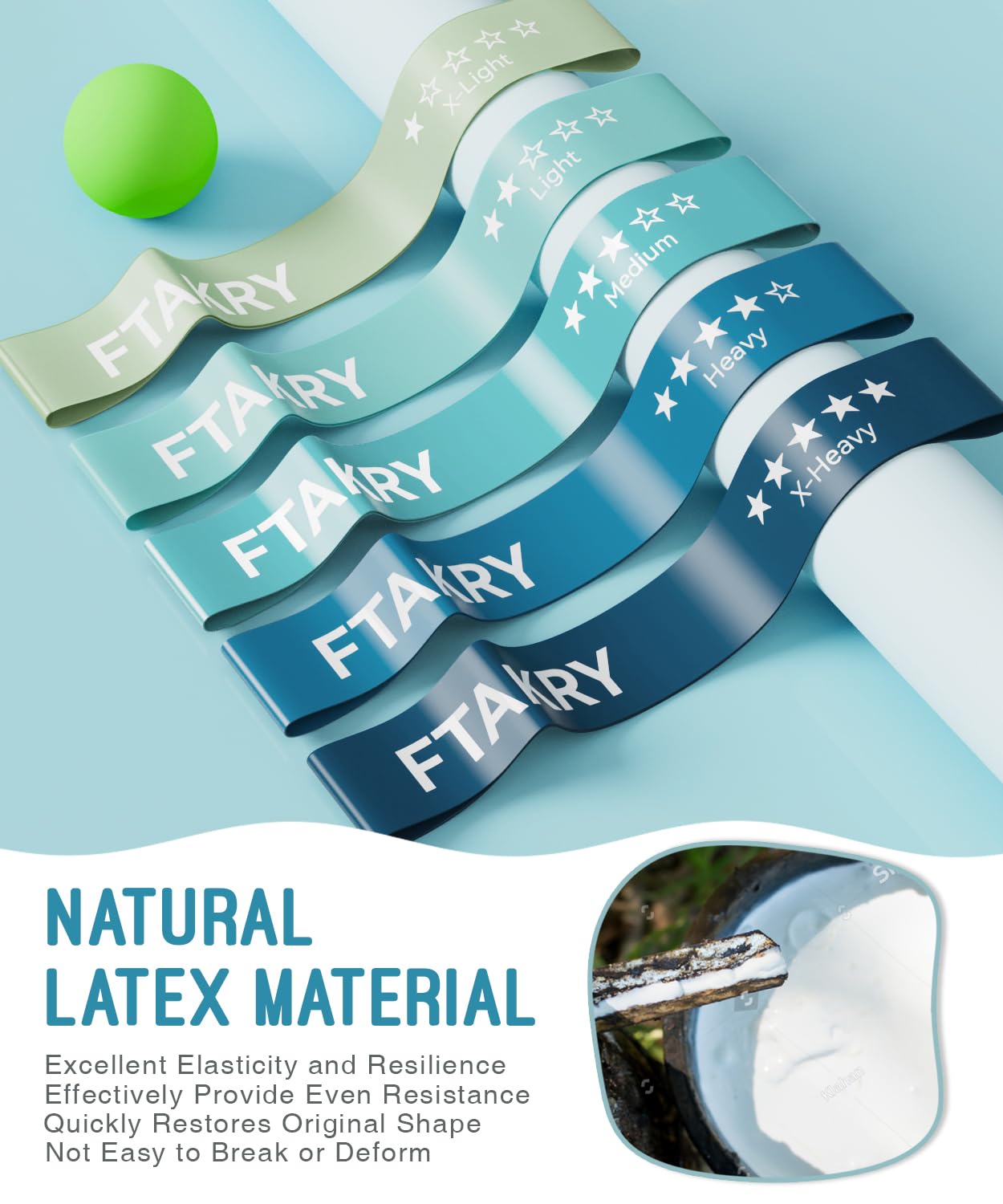 FTAKRY Resistance Bands for Working Out, Exercise Bands with 5 Resistance Levels, Natural Latex Resistance Bands Designed for Home Fitness, Strength Training and Flexibility Exercises (Blue)