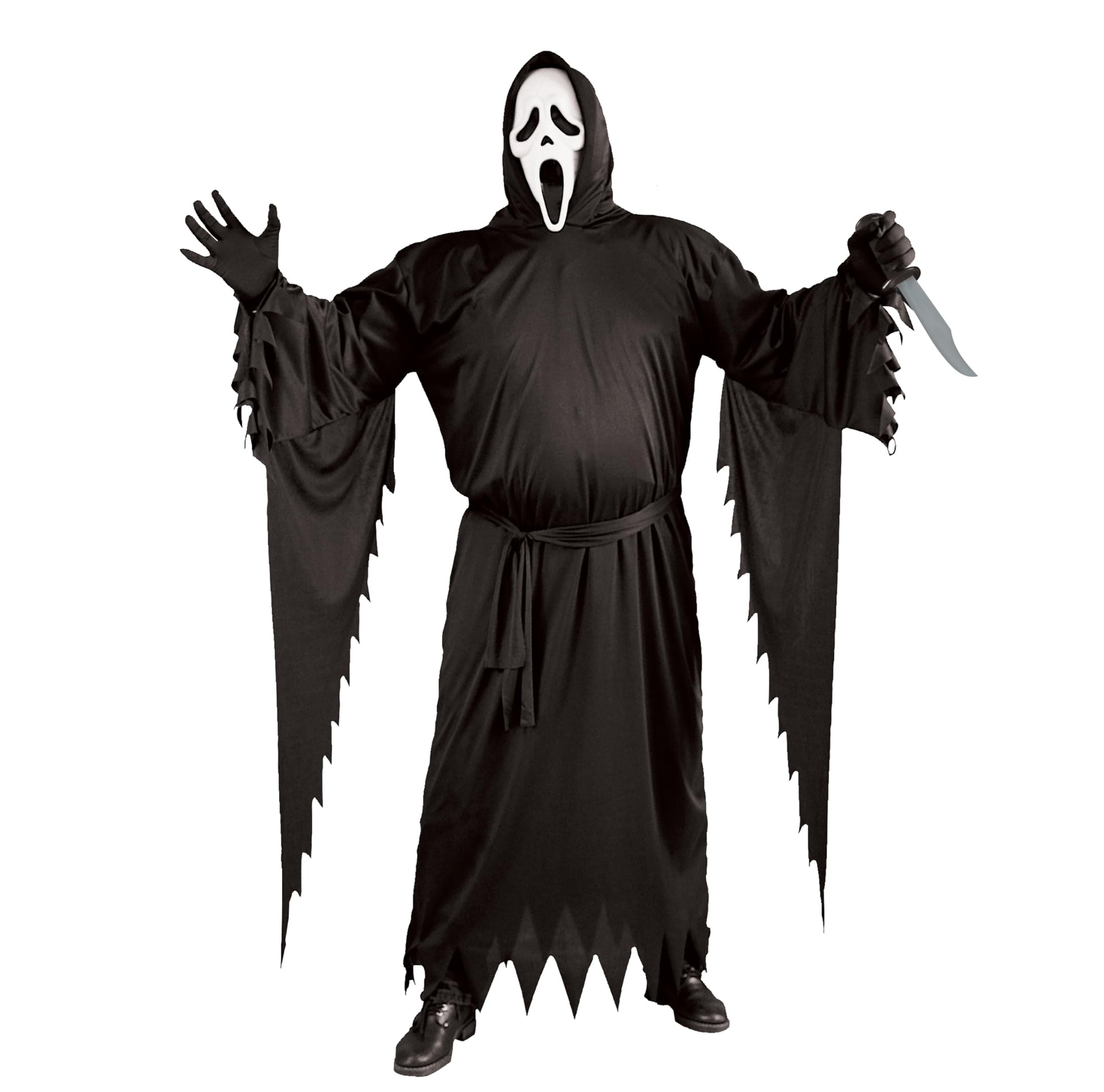 An excellent costume for Men featuring the costume from the movie 'Scream'. This set includes a full hooded robe, belt, and 'Scream Mask'