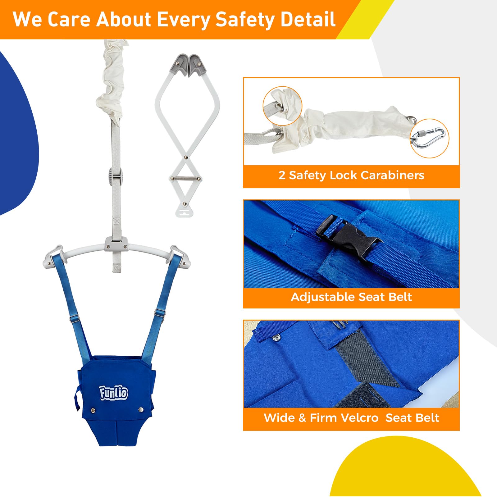 • 【More Flexible Springs & Height Adjustable Strap】FUNLIO baby doorway jumpers feature high-quality 304 stainless steel springs, strong & flexible. Our springs offer an extended and dynamic stretching range. Your baby can jump higher and have more fun! The nylon rope is equipped with an extensive adjustable height range, granting you the freedom to set the jumper at the perfect height. Baby will enjoy a comfortable and enjoyable playtime.