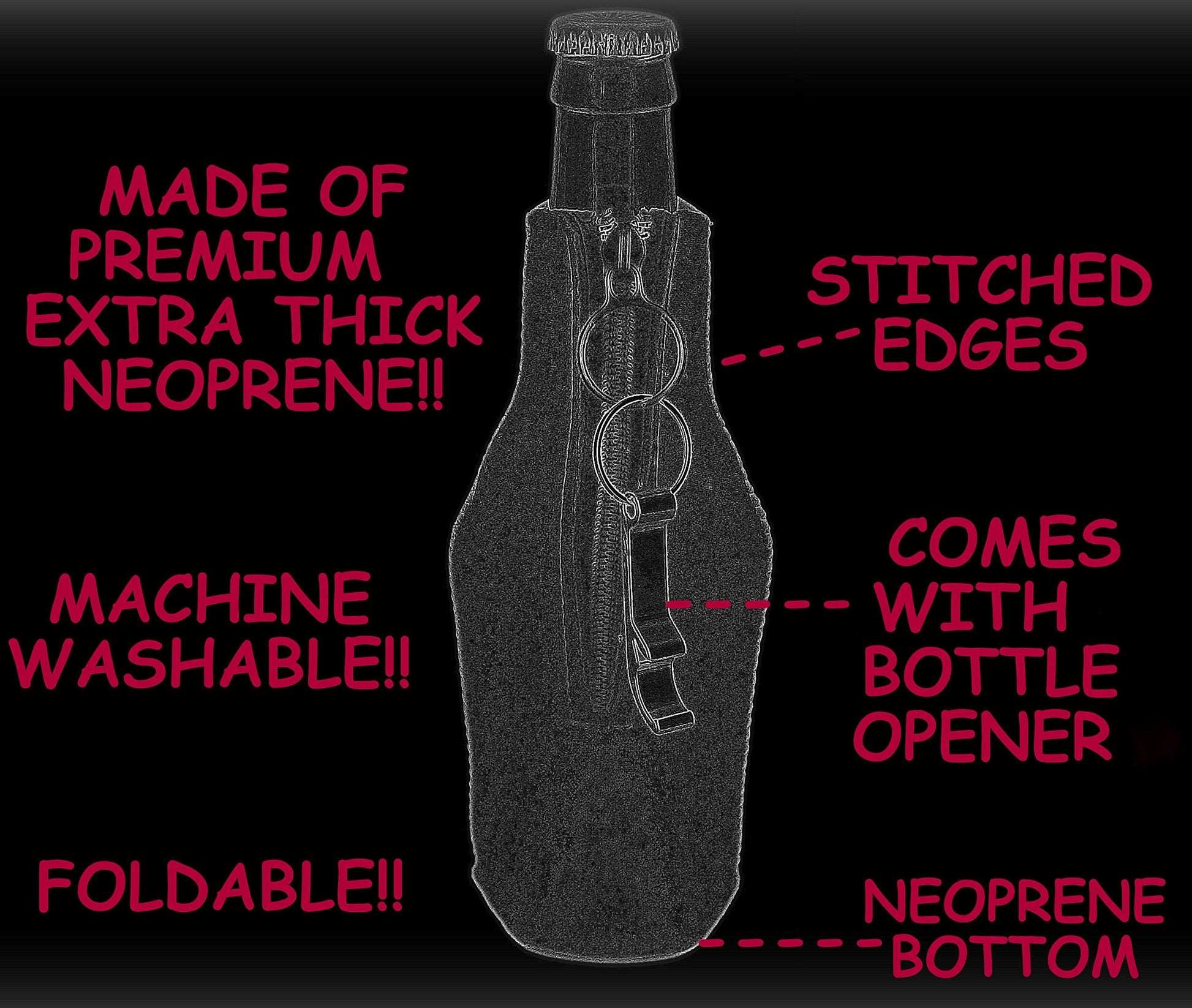 • HIGH QUALITY: This Bottle Coolie Is A Notch Above Your Typical Coolie! Made Of Premium Thick Neoprene That Will Keep Your Favorite Beverage Cool Longer & is Built To Last!!