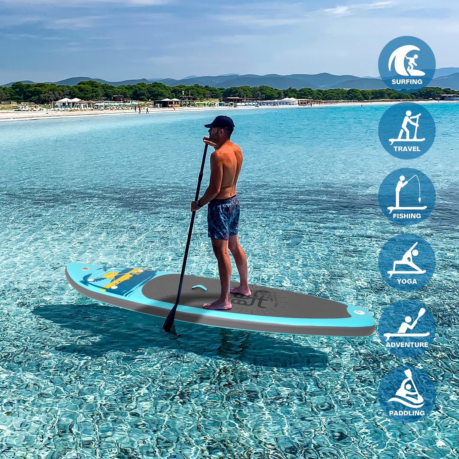 • 【Materials and Parameters】The new ultra light military grade double wall PVC is 35% lighter than similar size products, with excellent wear resistance, toughness and long service life. The paddleboards standard size is11' 33' × 6 ', carrying 330 pounds