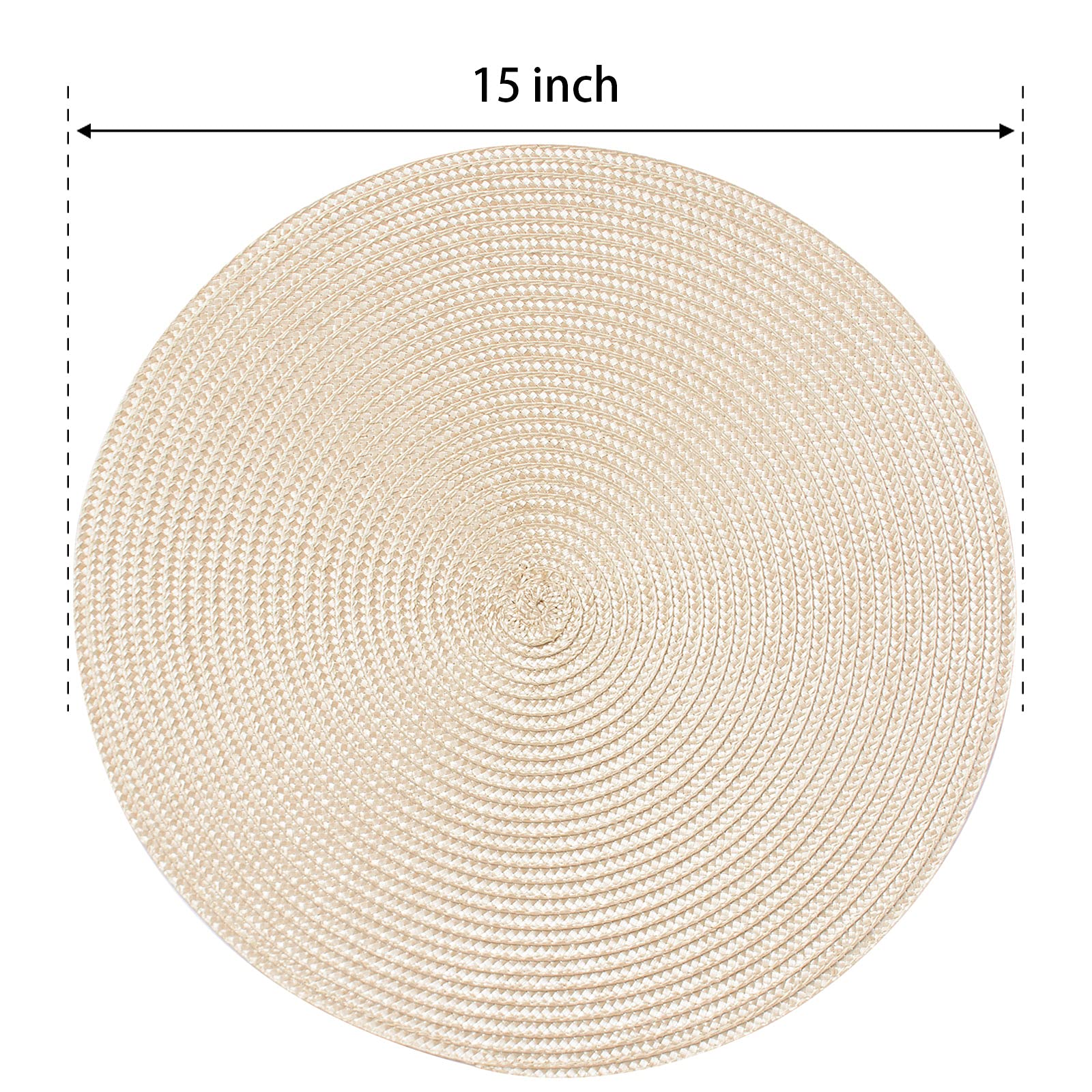 FunWheat Round Braided Placemats Set of 6 Table Mats for Dining Tables Woven Washable Non-Slip Place mats 15 inch for Easter Decoration(Ivory Beige, 6pcs)