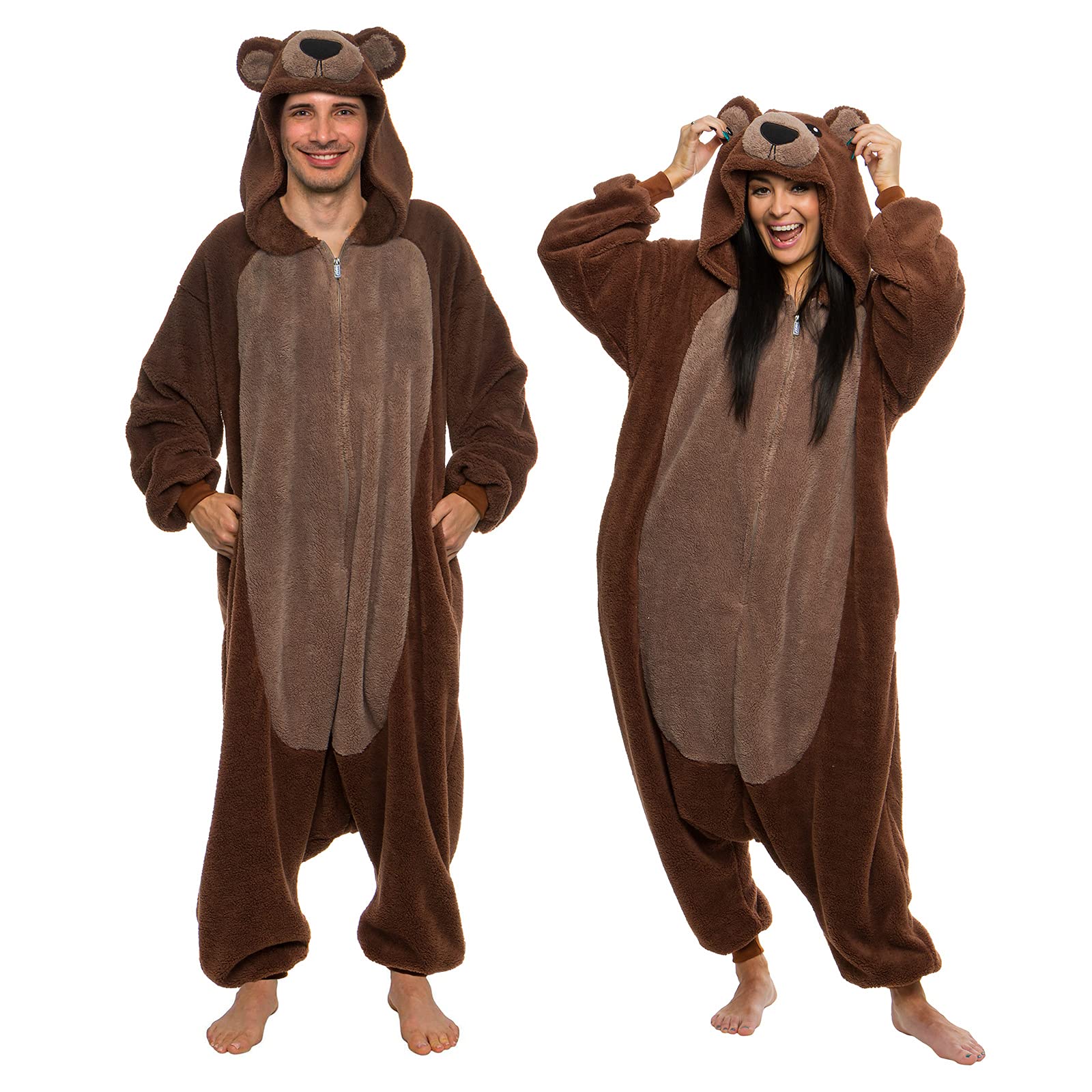 Funziez! Sherpa Bear Adult Onesie - Animal Halloween Costume - Plush Teddy One Piece Cosplay Suit for Adults, Women and Men(Brown, XX-Large)