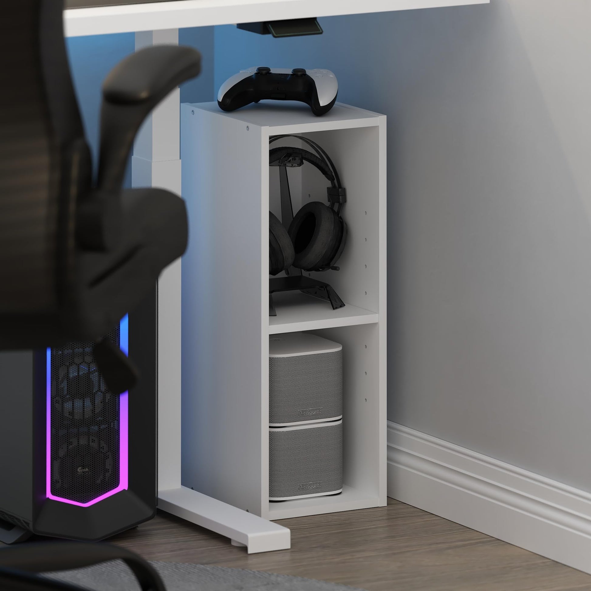 Furinno Fulda 2-Tier Space Saving Storage Shelf Bookcase, 8-Inch Width, White