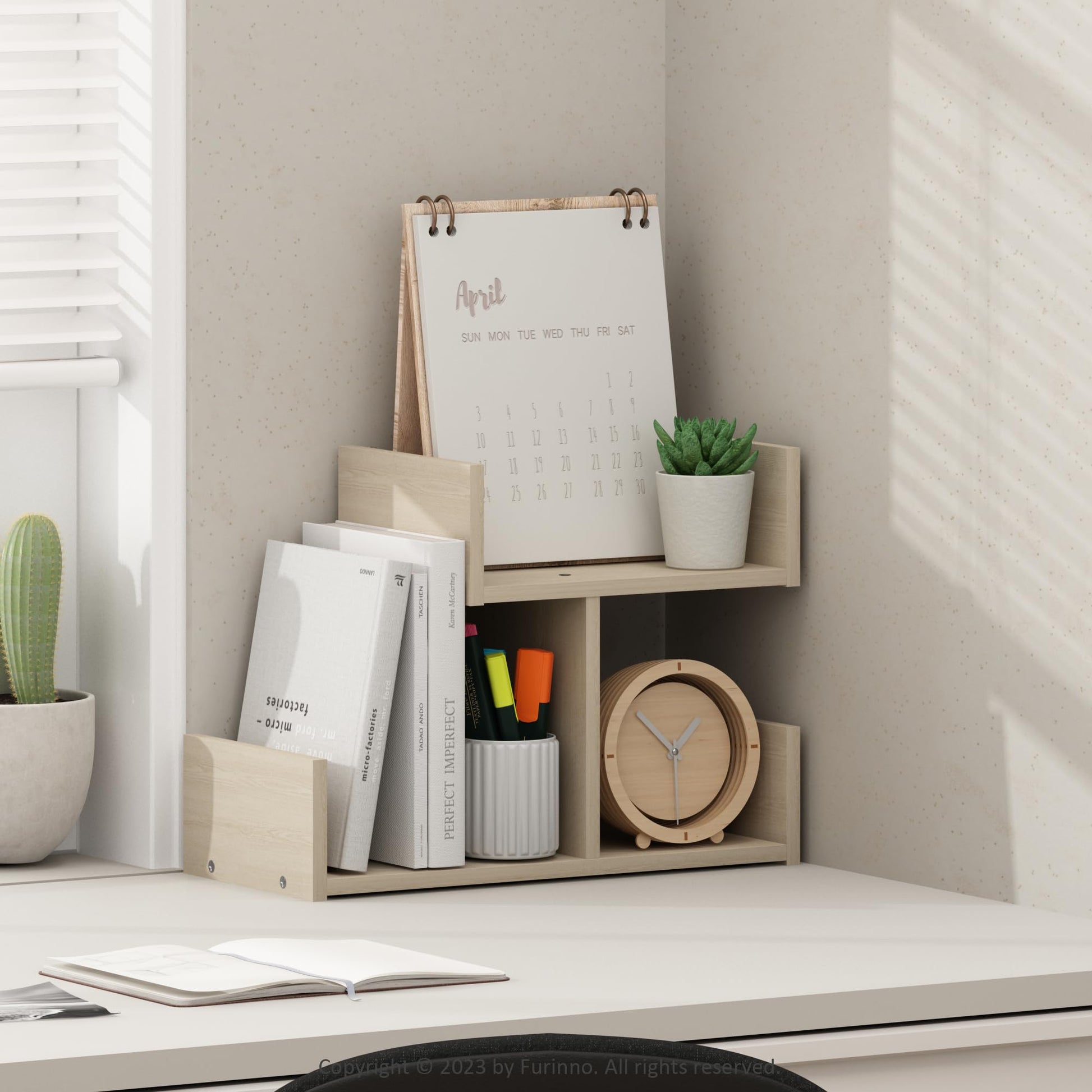 Furinno Hermite Wooden Desktop Bookshelf Storage Organizer for Home and Office Supplies, Bauhaus Oak