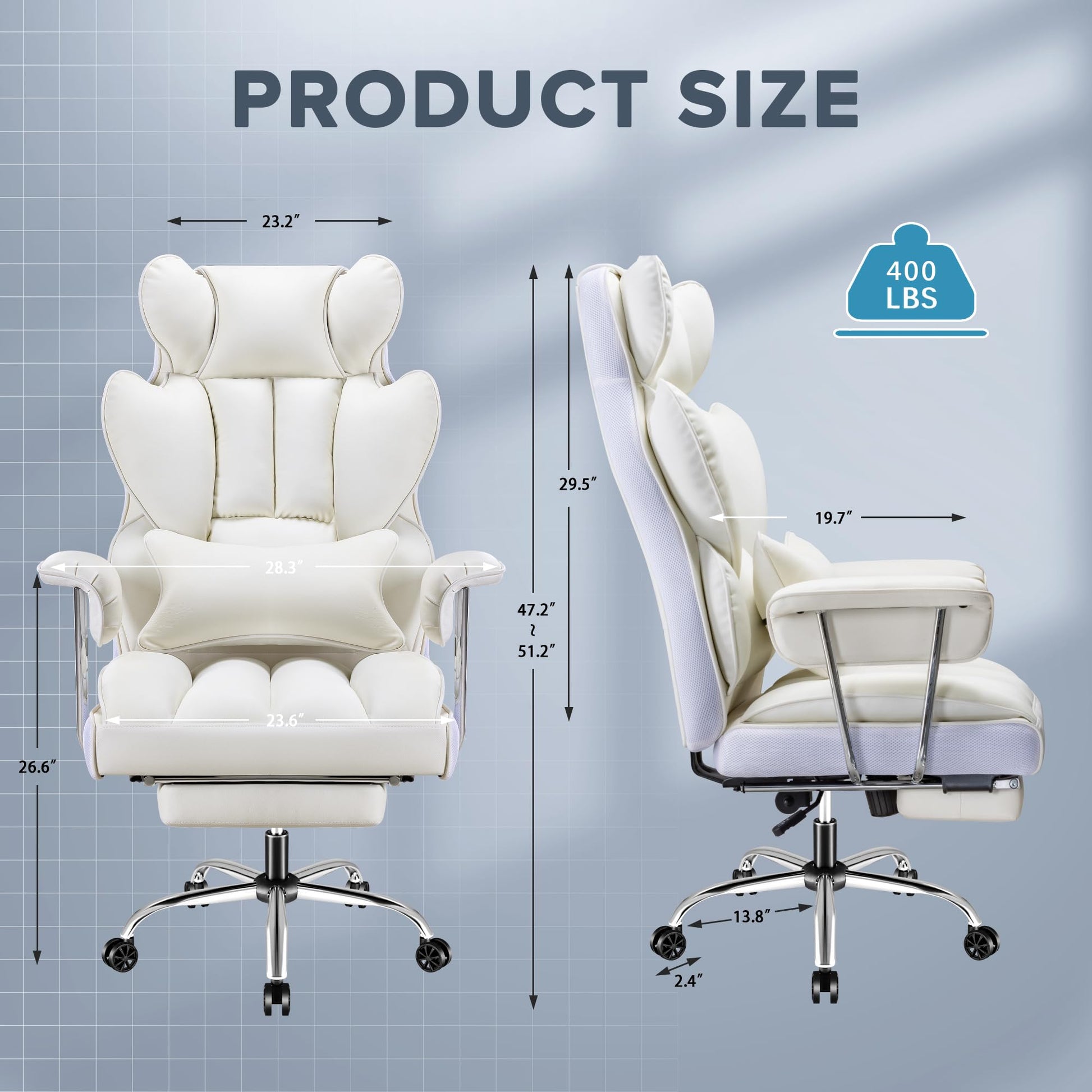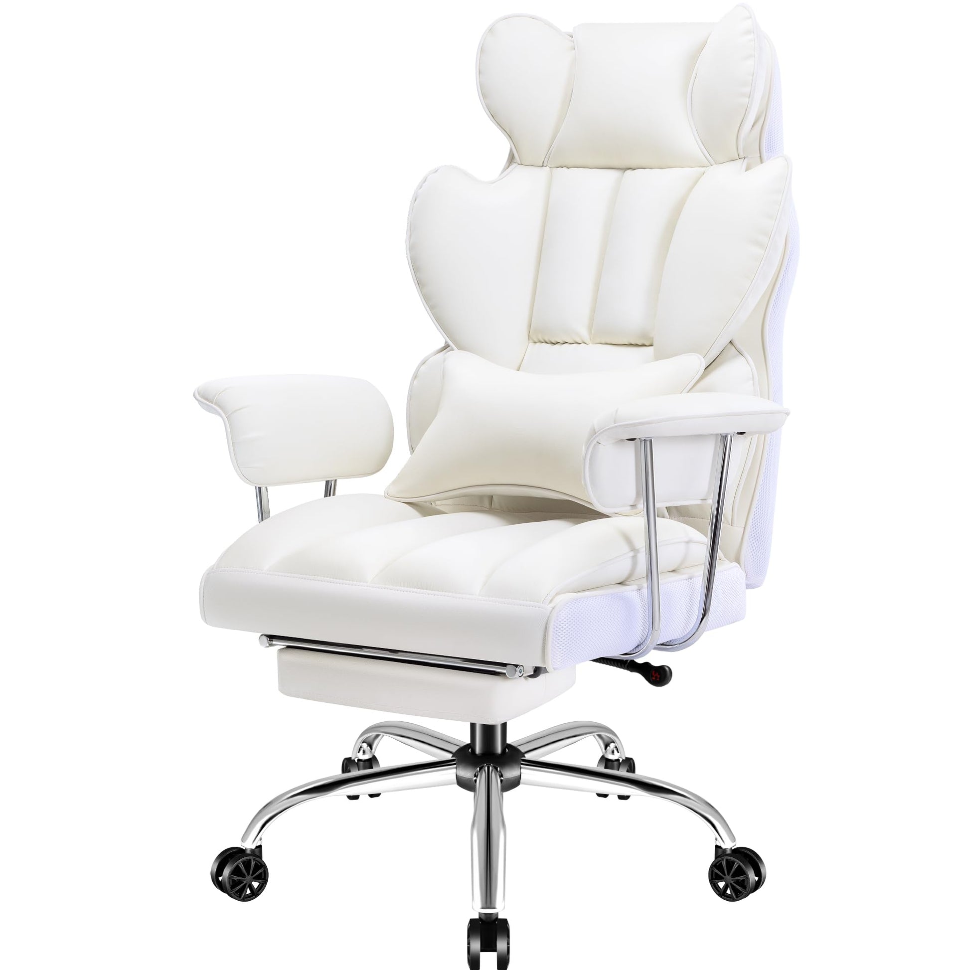Furmax Big and Tall Office Chair, High Back Leather Gaming Chair with Footrest, Reclining Ergonomic Executive Chair with Lumbar Support for Heavy People 400lbs Home Office Desk Chairs (White)