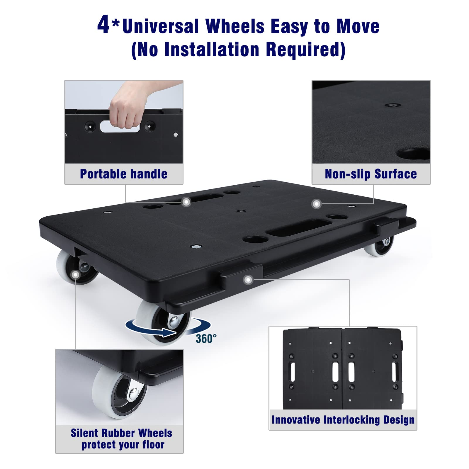 • [Innovative Interlocking Design]: You can connect two or more flat dollies together to move larger items just snap the two together, no tools or hardware needed.