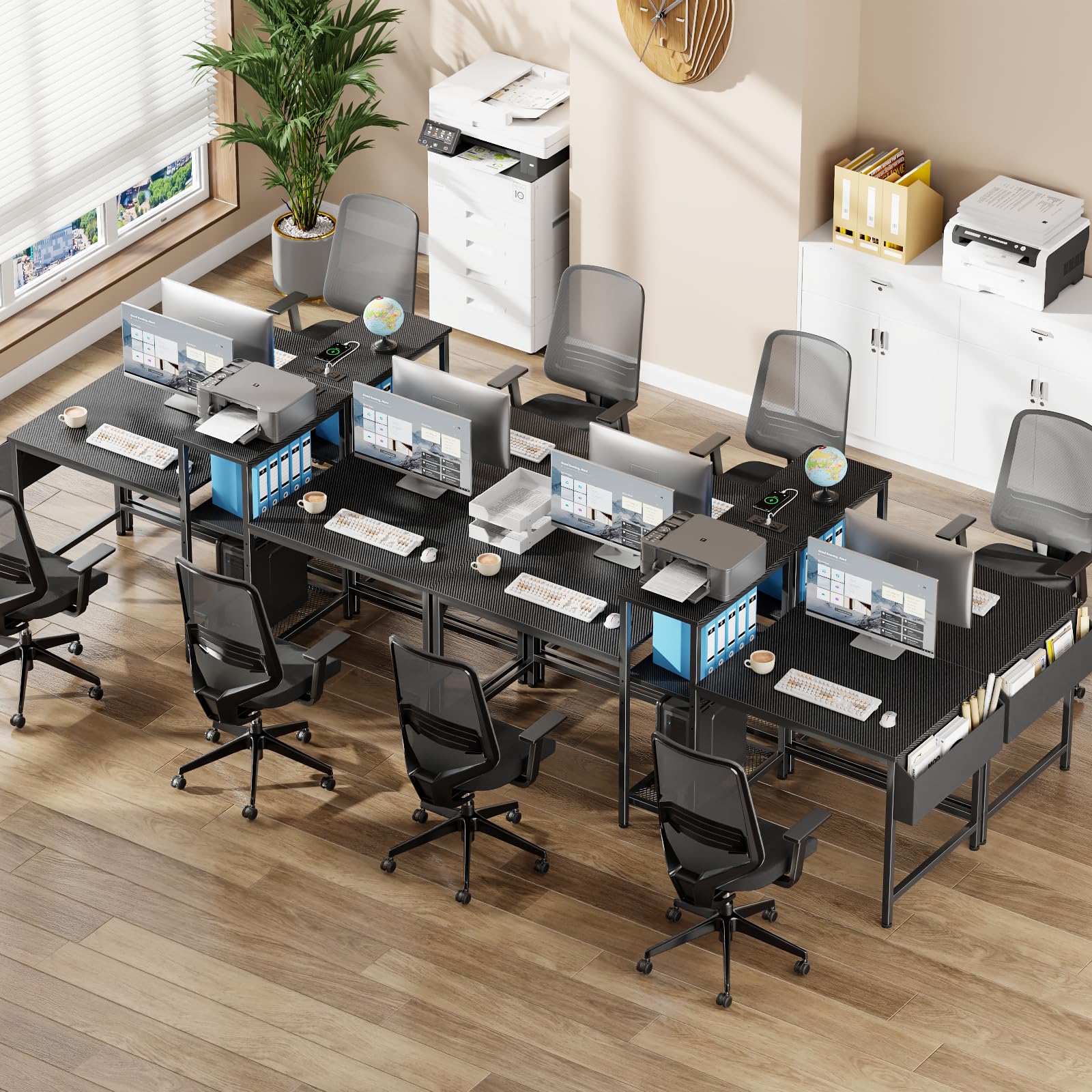 • [Long Gaming Desk with Power Outlets]: The 2 person gaming desk is equipped with a 2 built-in USB charging ports and 2 power outlets for charging phone, tablet, printer, scanner, gaming devices and more, making it a convenient solution for office, workstation, or home use.