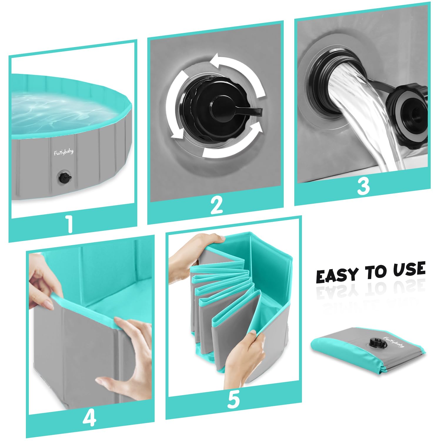• FOLDABLE FOR EASY CARRYING - The hard plastic kiddie pool will be easily folded for storage and is perfect for outdoor pet traveling. Folded size: 12.2*9.4*3.3 inch (with the recyclable package).