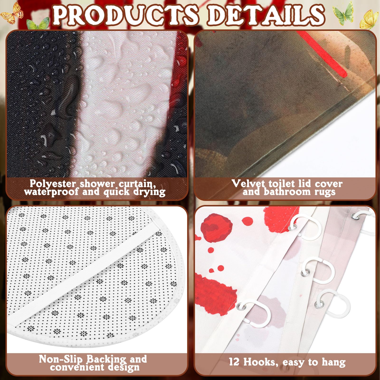 • Quality and Durability: our Halloween shower curtain sets with rugs can stand the test of time; Featuring a flannel made non slip rugs and toilet lid cover that exhibit a soft texture and high resistance to falling off; This set also includes a highly waterproof polyester shower curtain and thick, soft microfiber towels ensuring longevity