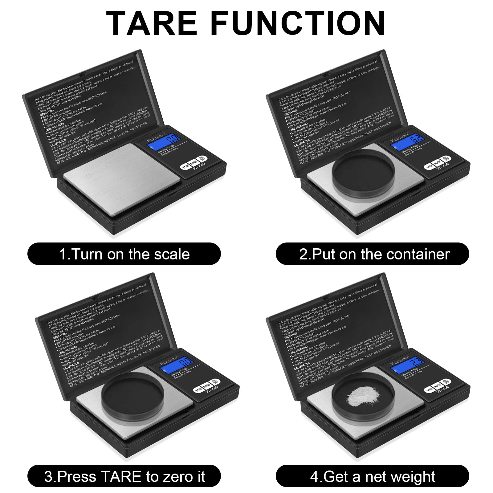 • Function: You can use the tare function to get the net weight of anything within 1000g by zero the weight of container. Energy saving by 3 minutes auto-off function.