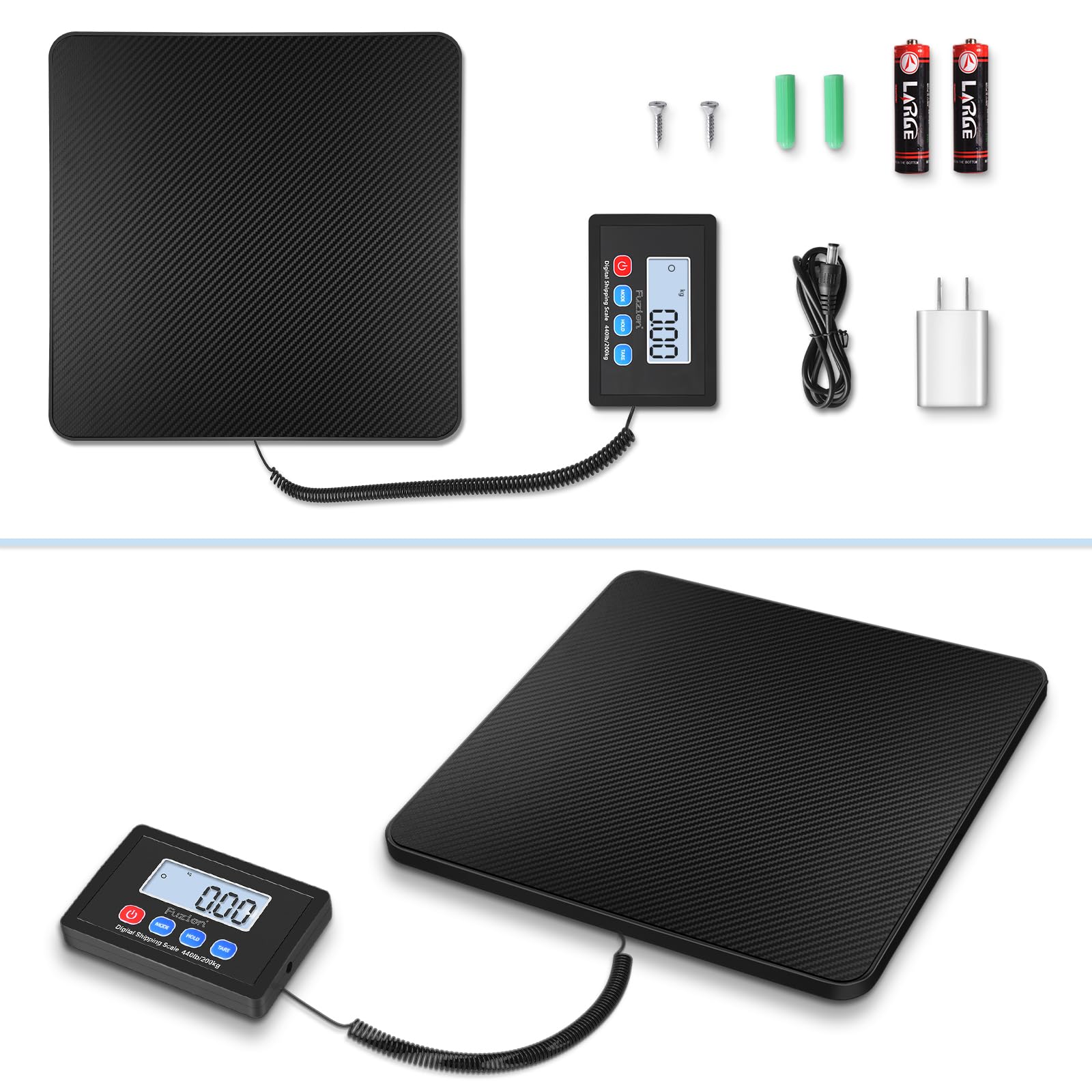 Fuzion Shipping Scale, 440LB x 10g High Accuracy Postal Scale, Hold/Tare Function, Digital Shipping Postal Scale for Packages, Postage, Luggage, Mailing, Battery & AC Adapter Included