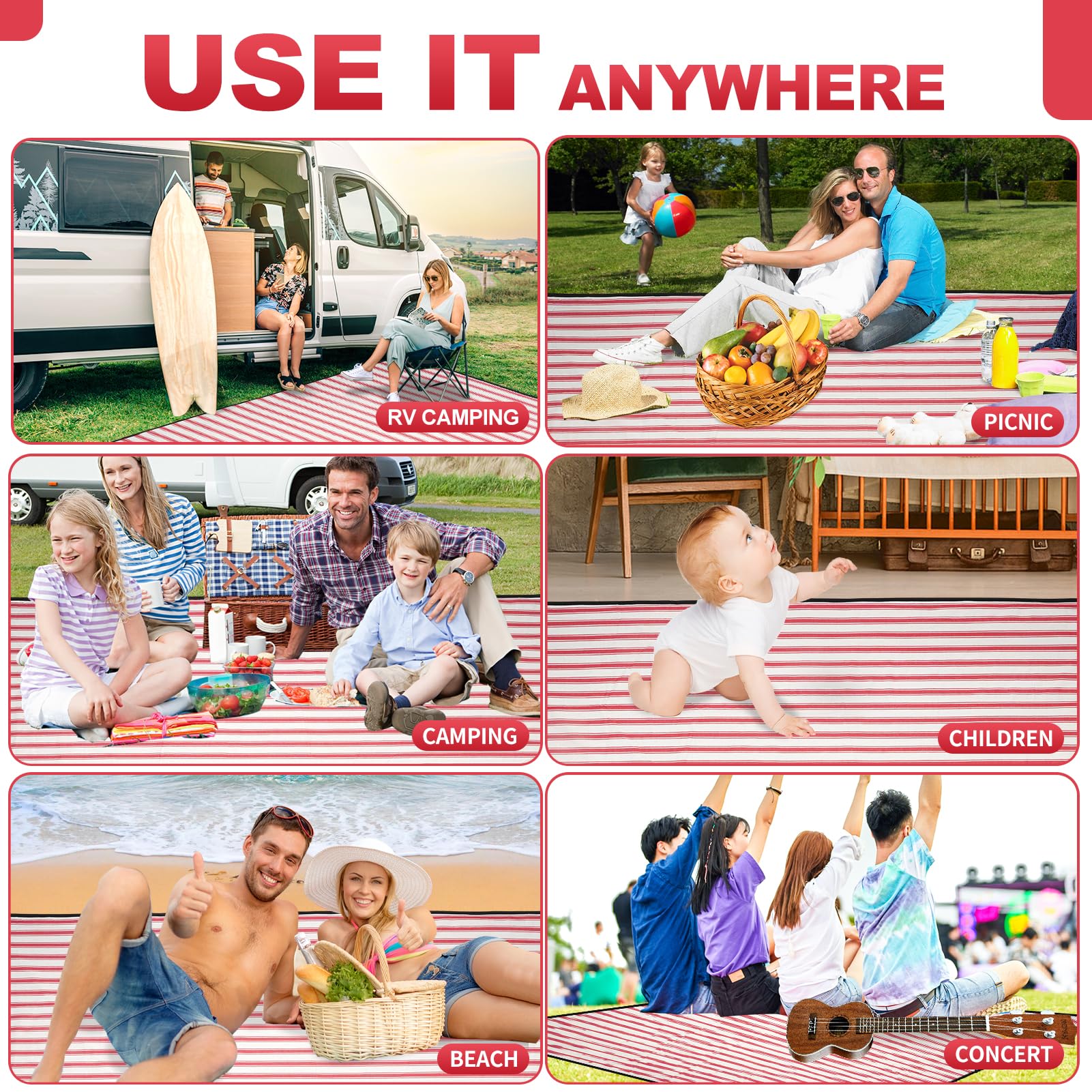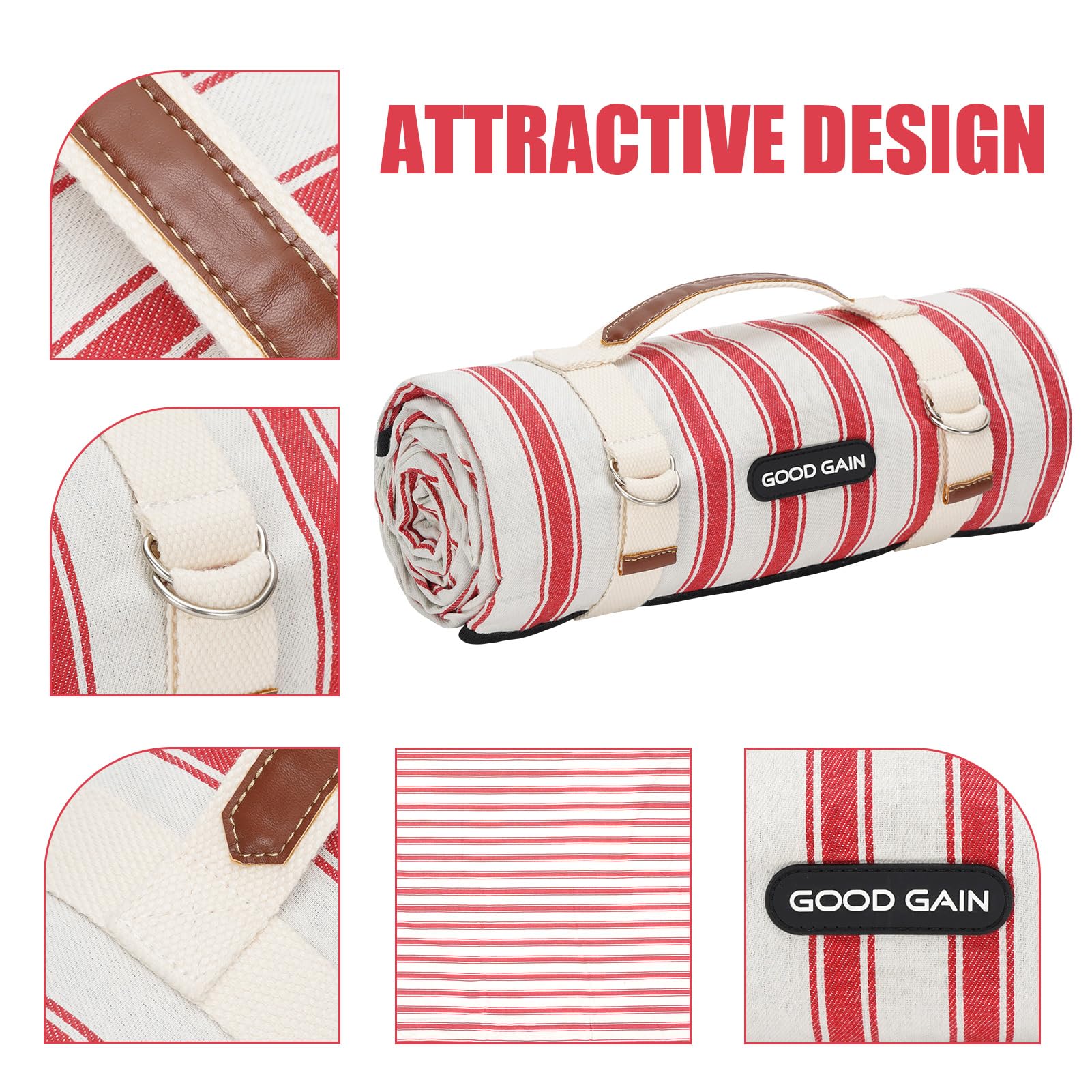 G GOOD GAIN Picnic Blankets Waterproof - Extra Large Outdoor Blanket Sand Free Foldable with Carry Strap for Beach, Camping, Park Grass, Hiking, Travel, Concerts, Indoor(Apple)