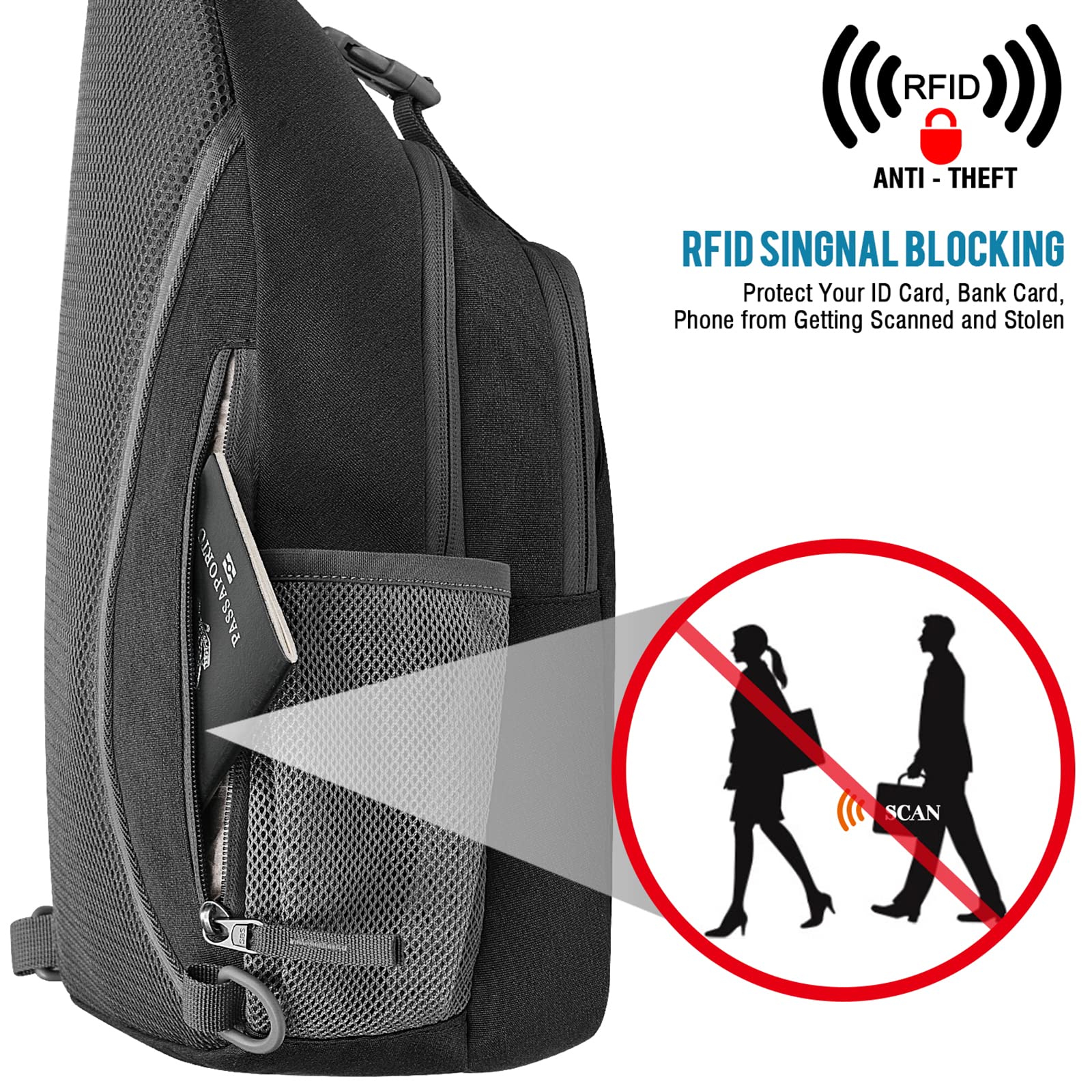 G4Free Sling Bag Rucksack, Diebstahlschutz, Brusttasche, Umhängetasche, Crossbody, Fitnessstudio, Tagesrucksack mit Kopfhörerloch für Outdoor, Radfahren, Reisen, Wandern, Herren und Damen