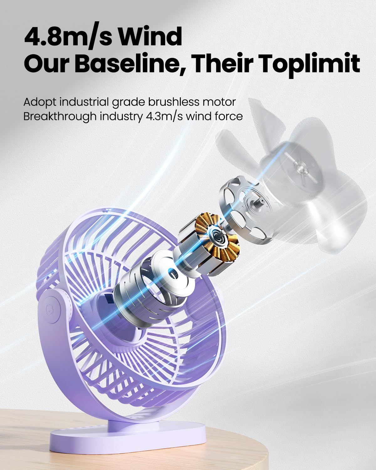 • Powerful and Super Quiet: The usb desk fan comes with a upgraded motor, makes wind stronger and noise lower; Max wind speed reachs 5.3 m/s, 30-50 db noise level; A great personal fan for sleeping and working (Please powered by a 5 V / 2 A power supply)