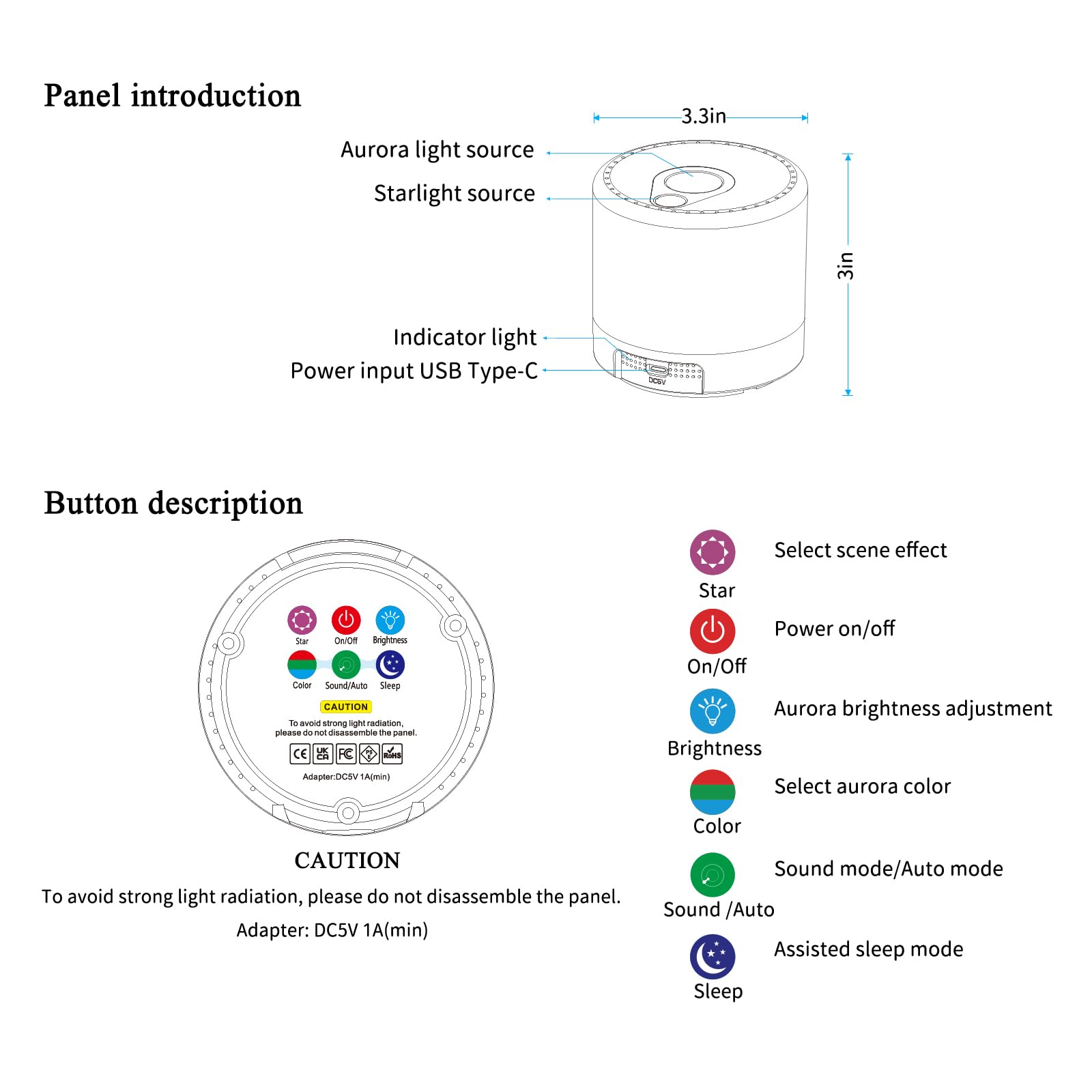 • AUTO MODE / SLEEP MODE / TIMER MODE / VOICE CONTROL: When adjusting the Galaxy Projector to Auto Mode, you can set your favourite lighting effects, and when you don't turn off the projector, the Galaxy Projector will always keep the lighting effects. When sleep mode is turned on for ten minutes, it will adjust to breathing mode and turn off automatically after about one hour. The Galaxy projector has an auto power off timer mode, use the remote control to set it to 0.5H/1H/2H/3H/4H after switching off, the projector will automatically switch off. When the voice-activated mode is turned on, the Galaxy projector's lights will change to the rhythm of music, clapping and stomping.