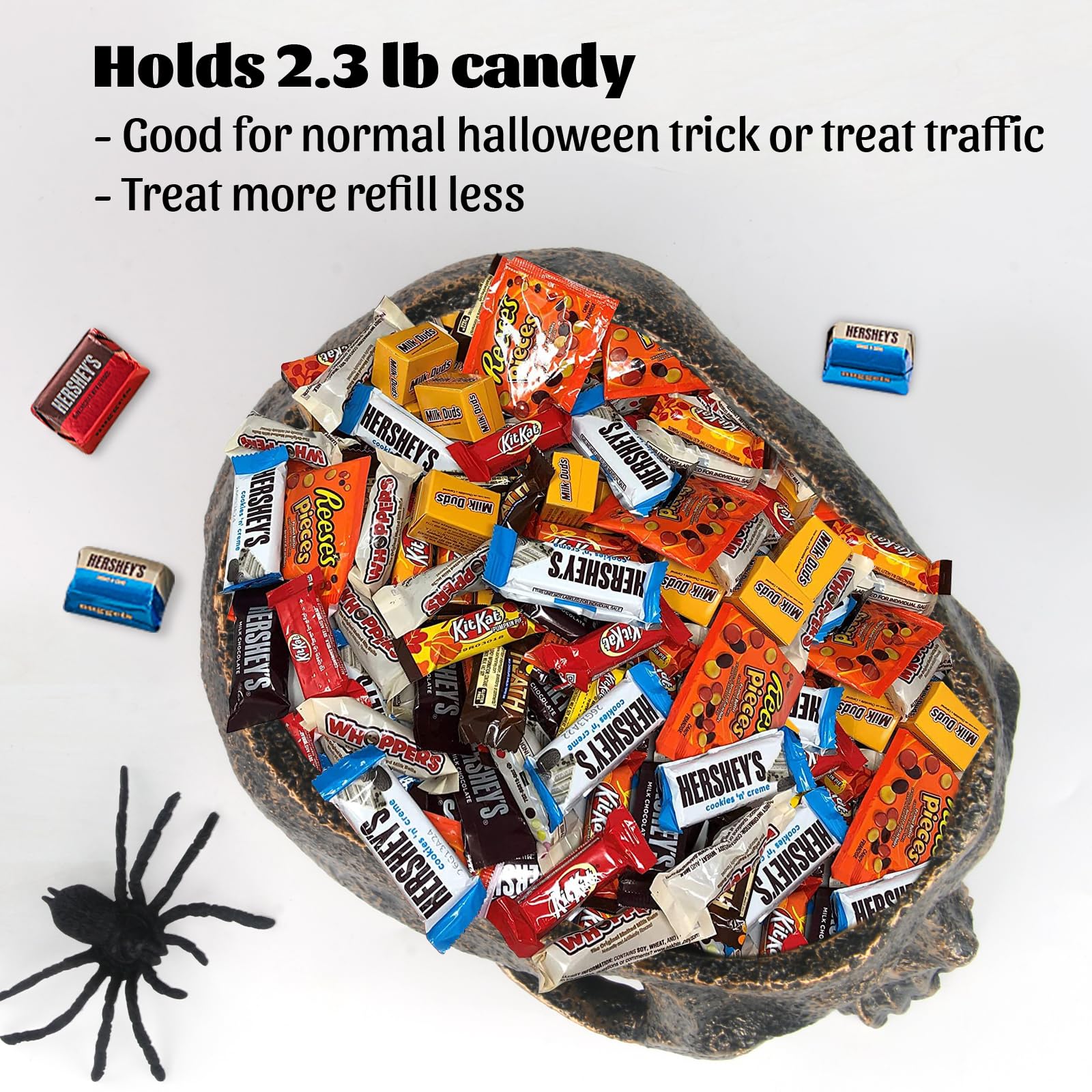 • 【HOLDS 100+ CANDIES】Deep skull bowl fits over 100 wrapped treats.