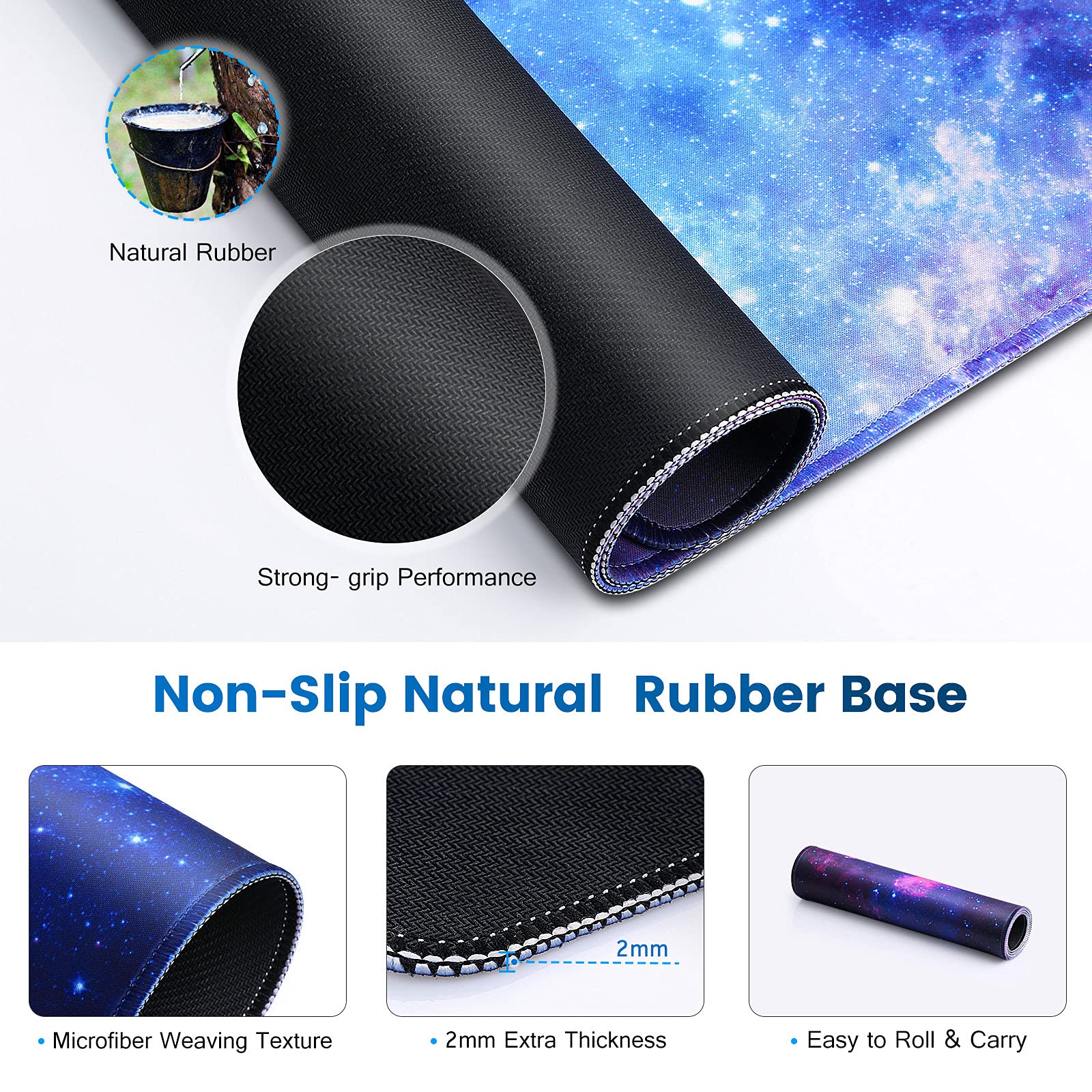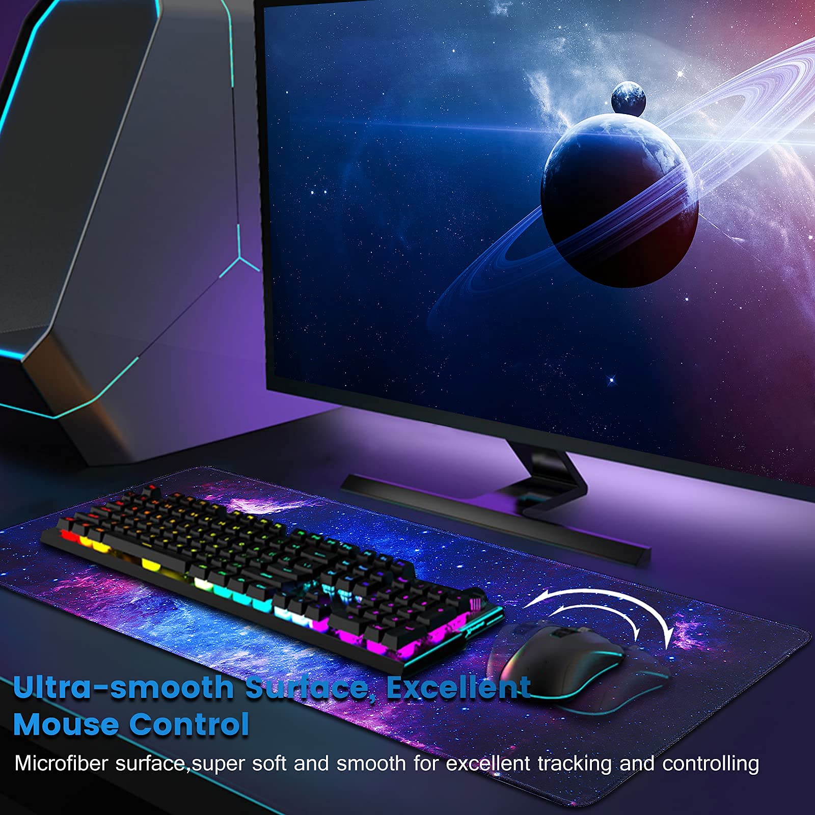 • ✔【Wide Applicability】Package:1 Pack XL Large Gaming Mouse Pad in size 800x300, 2mm thickness. Perfect gamer mouse pad for wired/ wireless gaming mouse, mechanical keyboard, laptop and more.If you meet any issues with our Galaxy mouse pad,please let us know, we are always ready to help.
