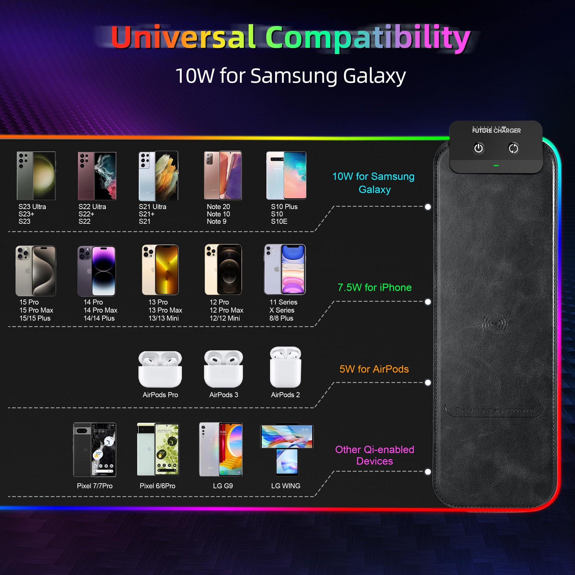 • Enhanced Protection Technology: Built-in Smarship to protect your phones from overcharging, shorts, and overheating; the gaming mouse pad is also equipped with foreign object detection; Just Put and charge
