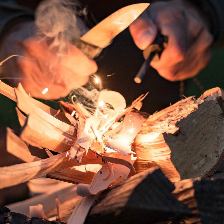• Premium Blade: 0.13 inch thick Swedish stainless steel blade has a Scandi grind edge profile for increased precision; 90º angle knife blade is compatible with the included fire starter