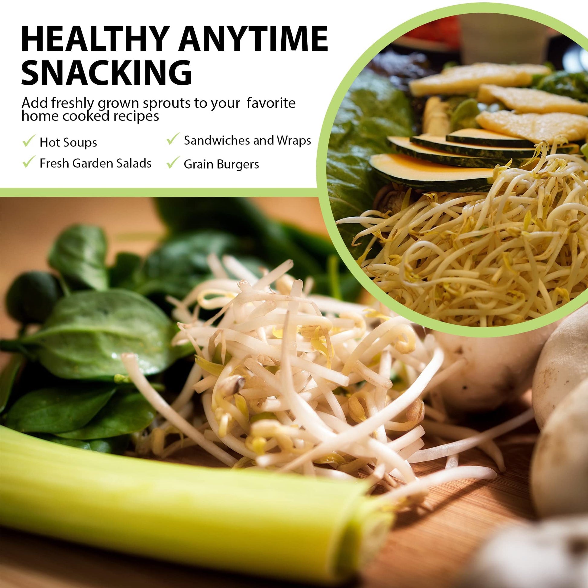 • YEAR ROUND INDOOR GARDENING - Enjoy freshly grown organic alfalfa, mung bean and radish sprouts, broccoli seed or chia seeds sprouts . Propagate a new crop every week