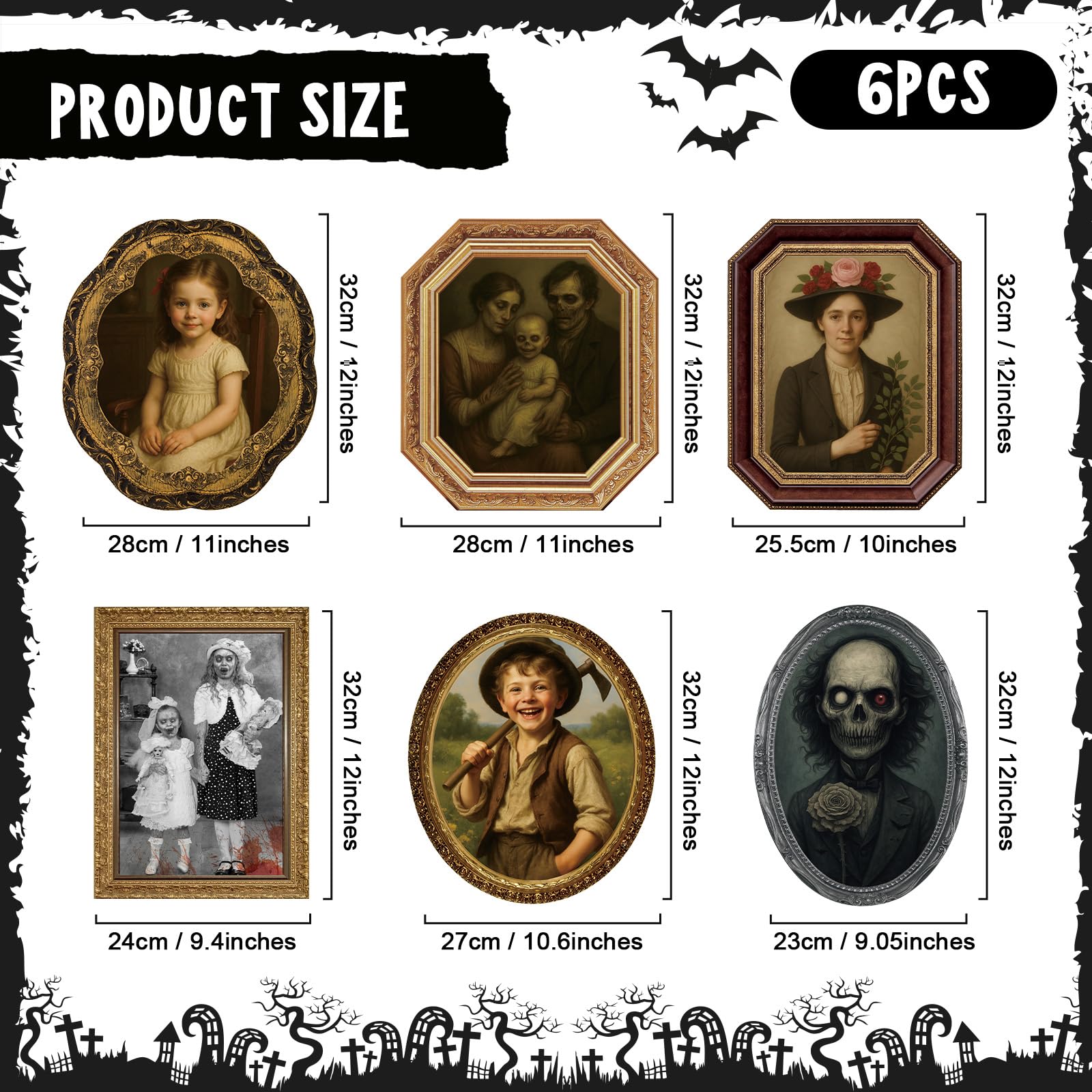 Garma Halloween Decorations Indoor, 3D Changing Face Moving Portrait Pictures Frames for Scary Halloween Haunted Mansion House Decor Wall Decoration- 6 Pack