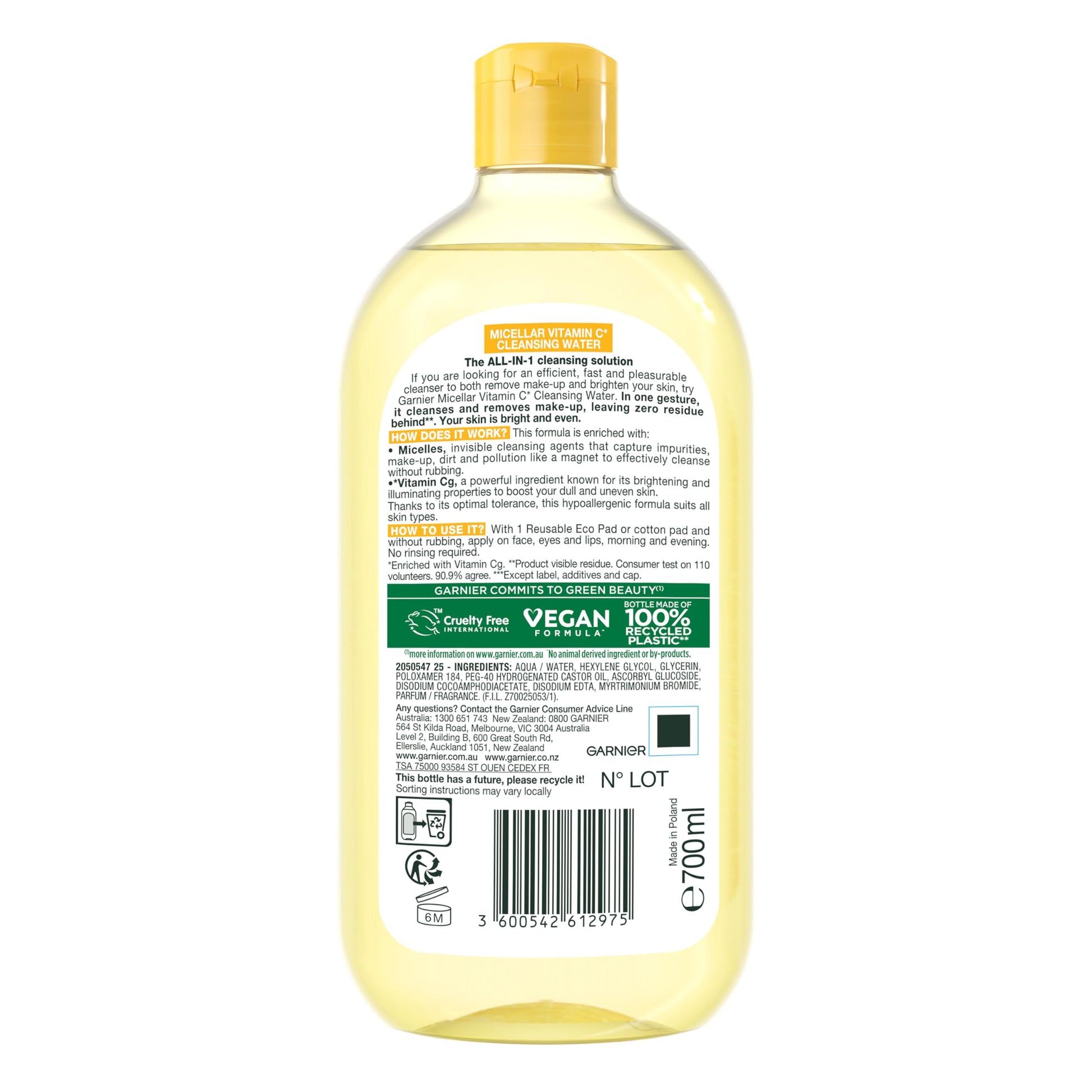 • Your skin is left feeling cleaner and brighter, with a more unified skin tone. Thanks to its optimal tolerance, Garnier's Vitamin C micellar water has a hypoallergenic formula that suits all skin types.