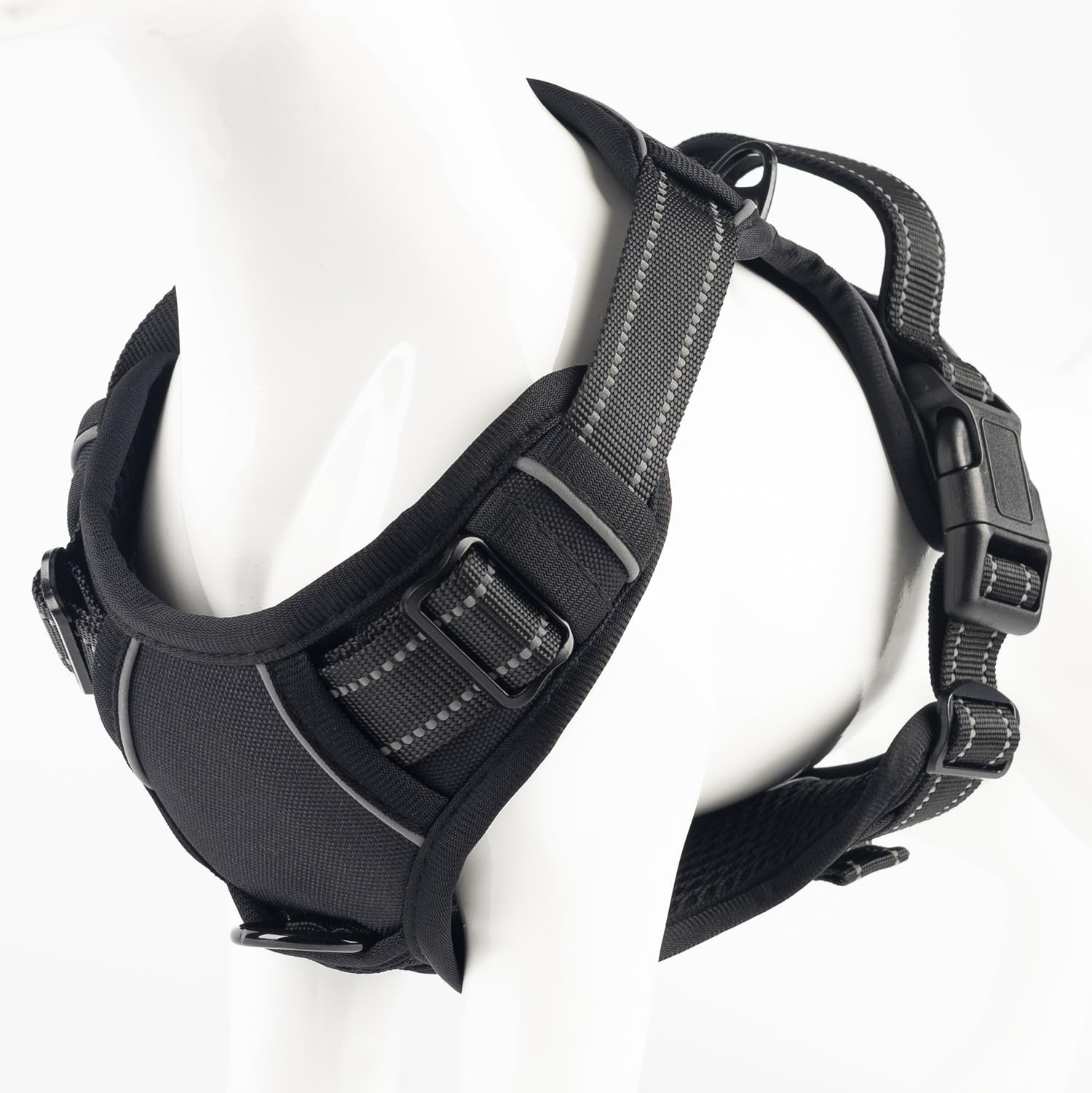 Gavpepy No Pull Dog Harness, Reflective Comfortable Vest Harness with Front & Back Easy Control Handle Adjustable Soft Padded Pet Vest for Small to Large Dogs (Large,Black)