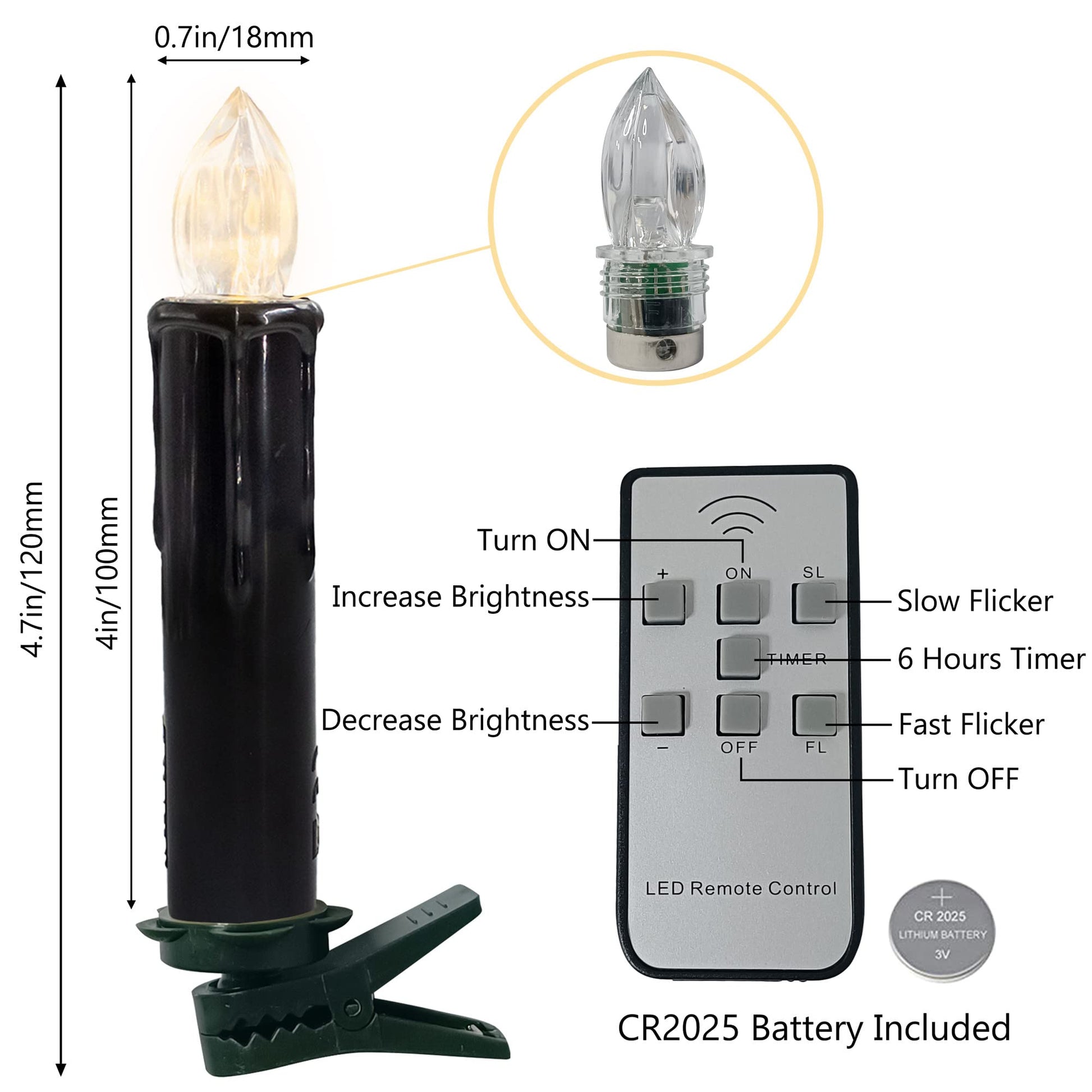 • Remote Controlled & Timer Function – Convenient Operation:Battery operated candles comes with an easy-to-use remote control to switch the candles on/off or activate flickering mode. Set the timer for automatic daily lighting—no need to climb up to the tree every night.