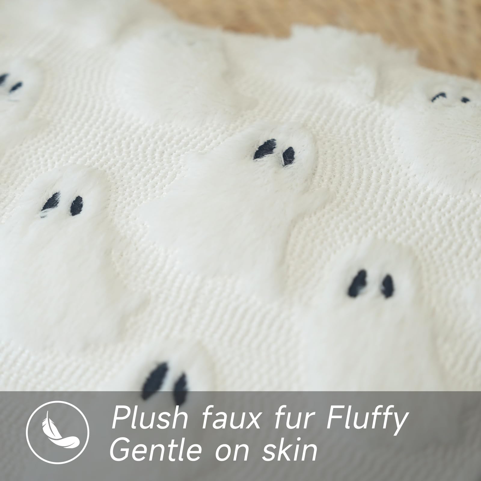 GEEORY Halloween Ghost Soft Plush Pillow Covers, 18 x 18 Inch Set of 2, Fluffy Faux Fur Wool Decorative Farmhouse Cushion Case for Sofa Home Decoration White GC026-18