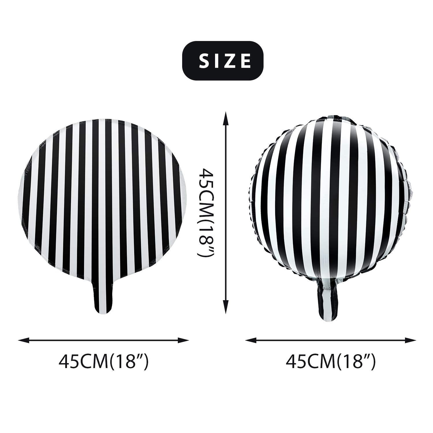 • Safe material: the black white stripe balloons are made of foil, welded seams and special inflation valves for long lasting fun, easy to inflate with a straw or a pump, the balloon can be inflated with a helium inflator or with air using a balloon air Inflator, safe for people to use