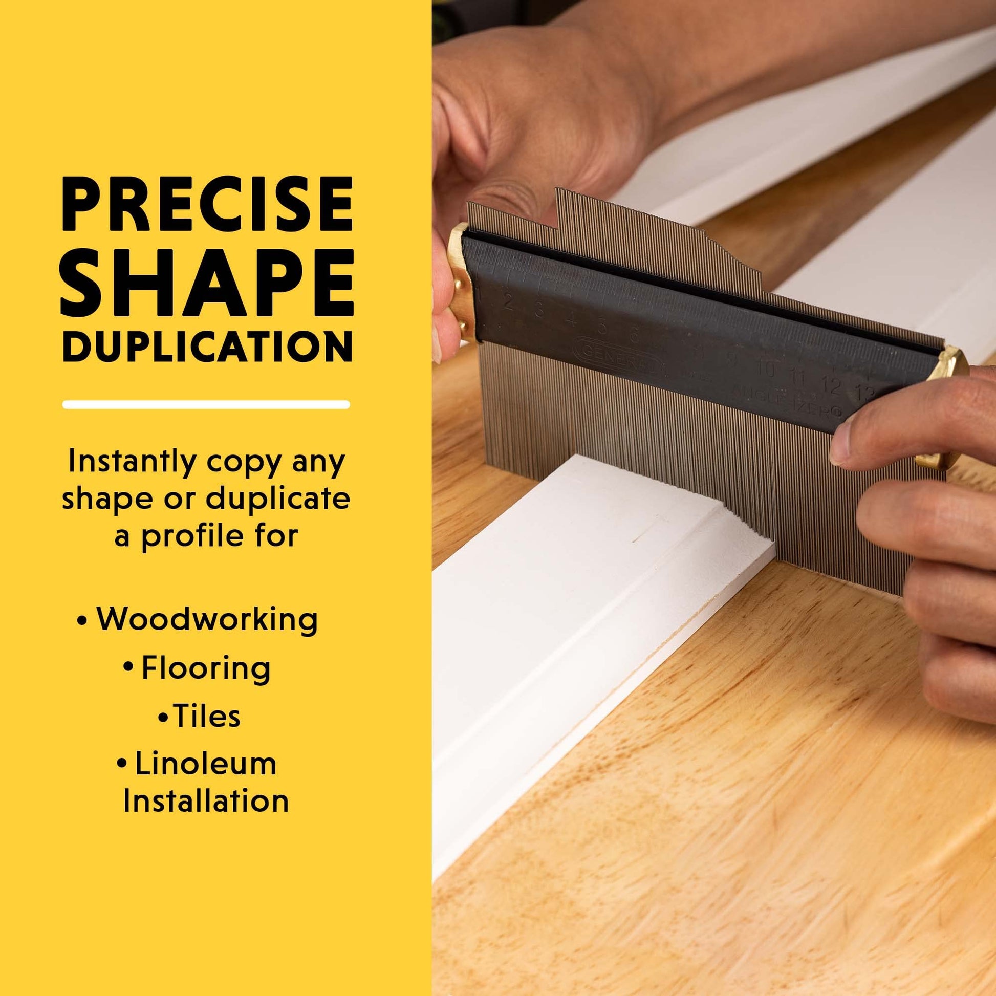 PRECISE SHAPE DUPLICATION: Instantly copy any shape or duplicate a profile for woodworking, tile flooring, and linoleum installation. This ANGLE-IZER tool can replicate the detailed moldings or match cut-outs around door casings and pipes.