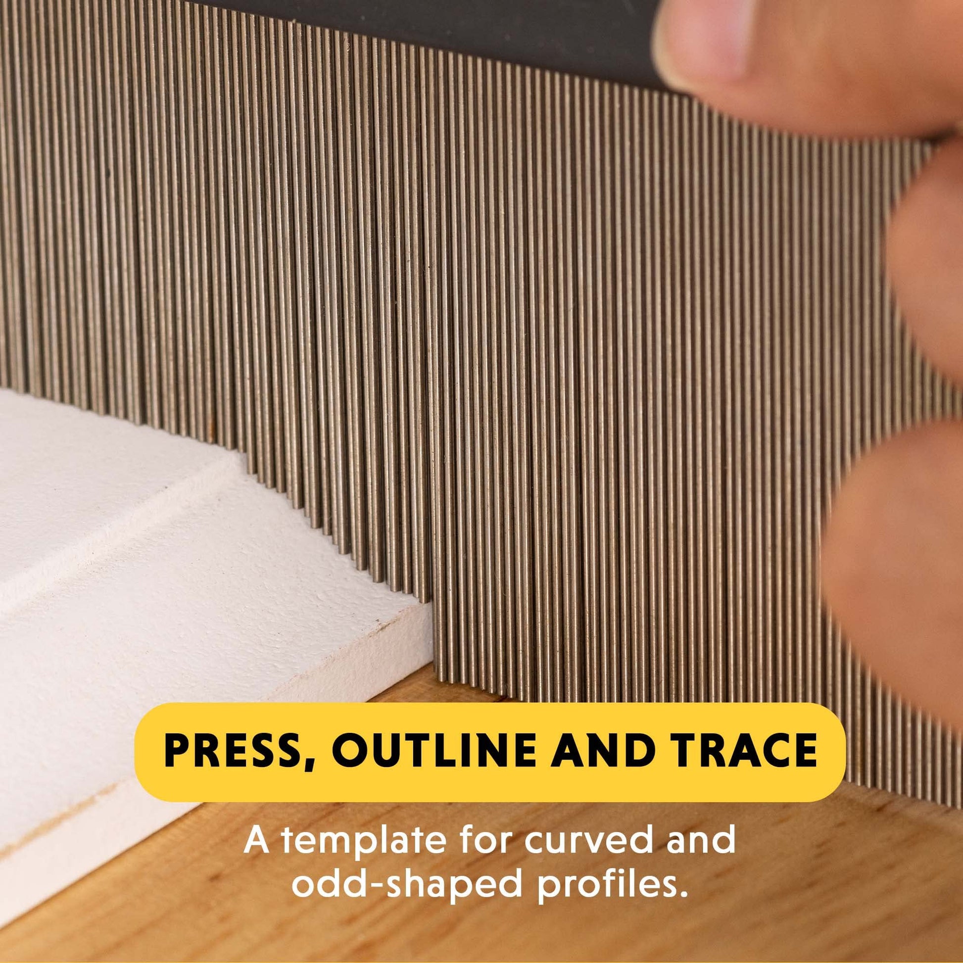 CORNER TRIM: Ideal for measuring moldings for reproduction, duplicating spindles on the lathe, copying curves, and various other contour matching jobs. Just press the tool’s teeth onto an outline and trace.
