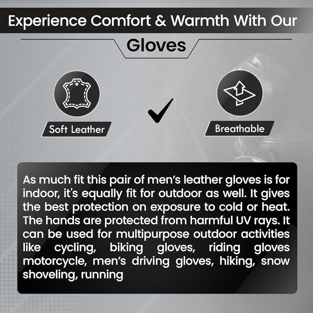 As much fit this pair of men’s leather gloves is for indoor, it's equally fit for outdoor as well. It gives the best protection on exposure to cold or heat. The hands are protected from harmful UV rays. It can be used for multipurpose outdoor activities like cycling, biking gloves, riding gloves motorcycle, men’s driving gloves, hiking, snow shoveling, running. It gives a good grip while driving and does not give a tough time while handling things, gives control, and hence increased safety.