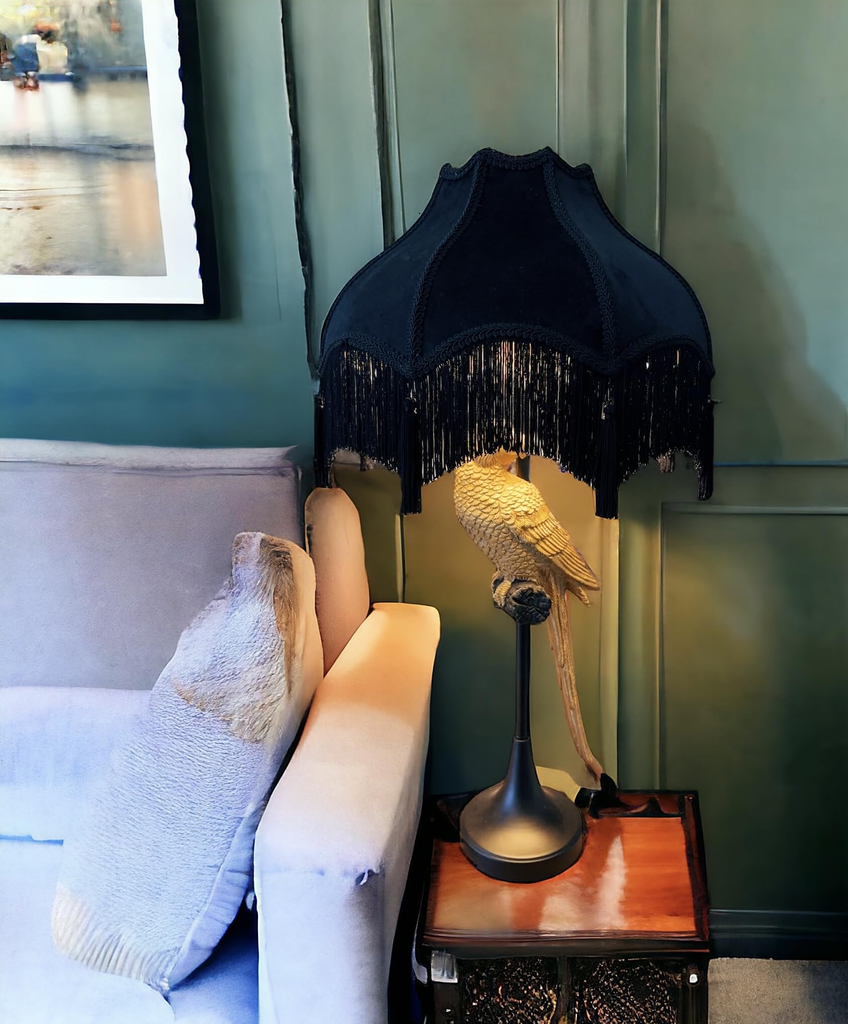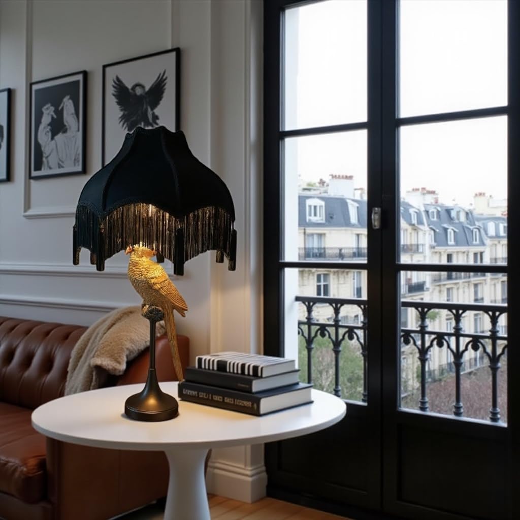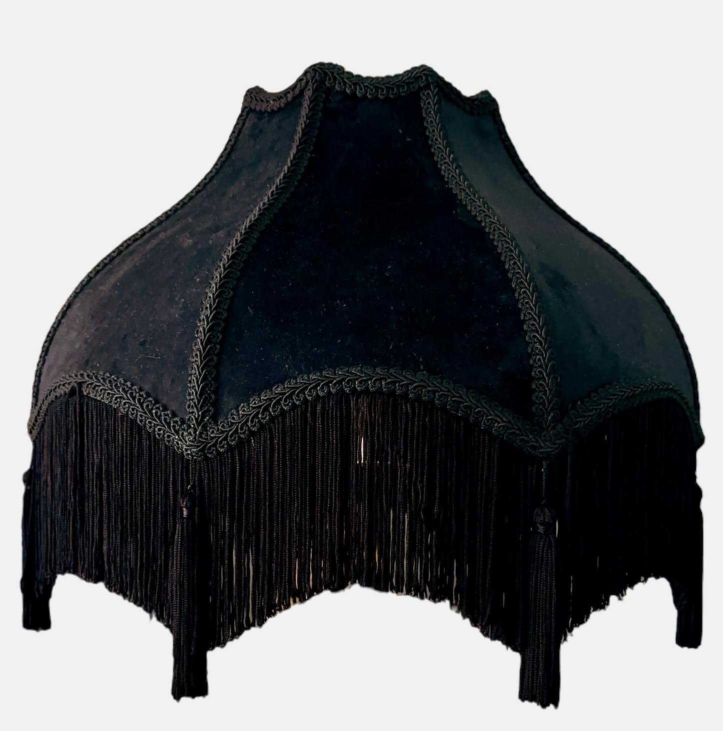 Generic Tristan Home Premium Classic Victorian Style Bell Shape Scallop Large Velvet Lamp Shade with Tassels and Fringe (Midnight Black)